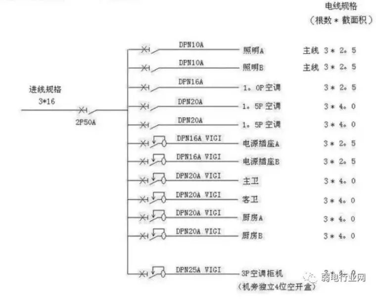 另外一条是厨房,满足:照明、油烟机、燃气热水器、消毒柜、冰箱、微波炉同时使用。