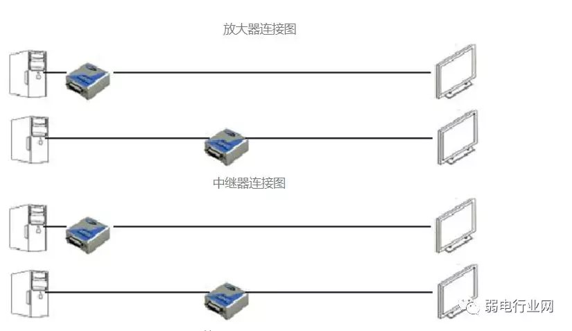 2、使用信号放大器和中继器 如果传输距离在30米左右。可以使用信号放大器或者中继器。这两个的区别在于:放