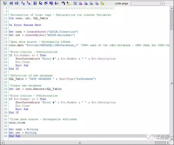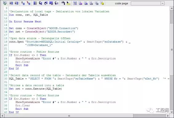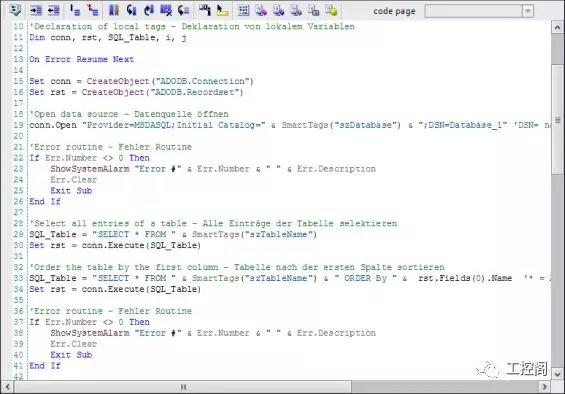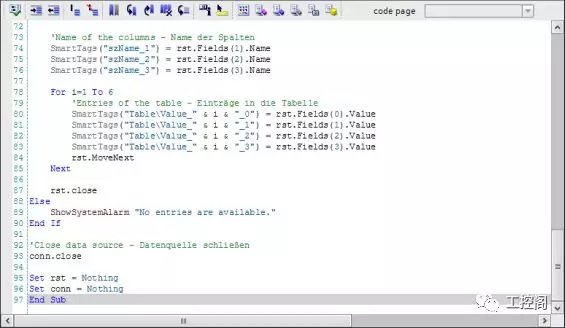 SQL 也可以用于显示一个 SQL 表中全部或多个数据记录的内容。为了连接数据库需要使用到“ADODB.Connection”和“ADODB.Recordset”两个对象。 4.1 从表中读取所有数据:脚本 "Show_all_entries_of_a_table"
