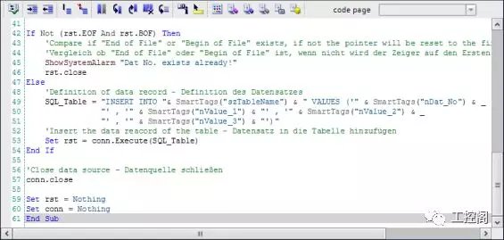 如果数据记录包含在表中,SQL 命令“UPDATE”用于使用新的参数覆盖数据记录。如果数据记录不包含在表中,使用 SQL 命令“INSERT INTO”添加。 如在3.1中查询“EOF = End of File”和“BOF = Begin of File”用于检测数据记录是否存在。 |