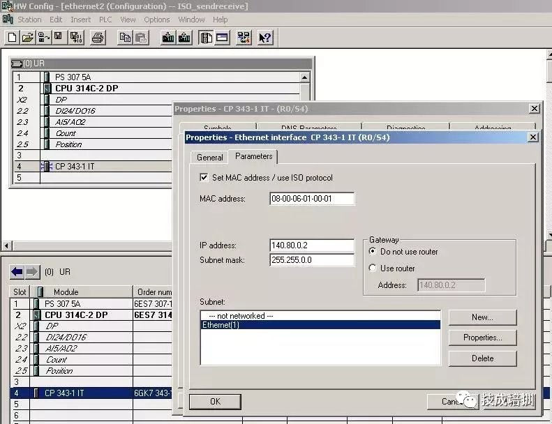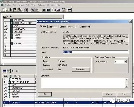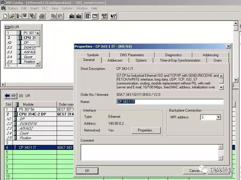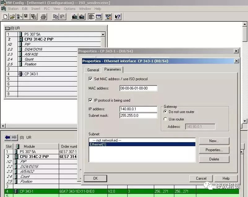 设置CP343-1、CP343-IT模块的参数,建立一个以太网,MPI、IP地址: