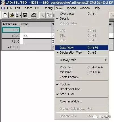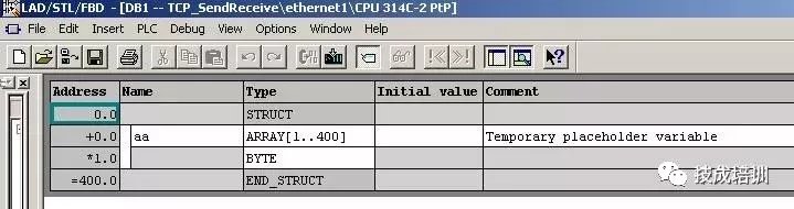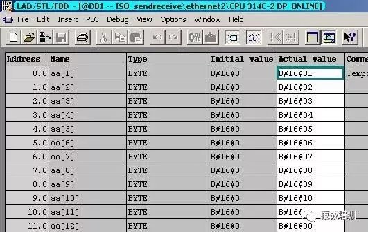 如下界面说明了将CPU314C-2DP 的DB1中的数据发送到CPU314C-2PTP 的DB2中的监视界面: