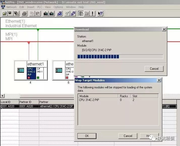 当2套系统之间的链接建立完成后,用鼠标选中图标中的CPU,分别进行下载,这里略去CPU314C-2DP的下载图示: