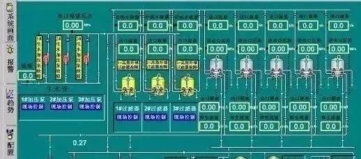 这个是做过的一个小项目,只有一些泵和阀,控制逻辑都很简单。在画面中可以显示压力,流量之类的信息,也可以对设备操作控制。学会做这样的一个画面需要多长时间?一周就够了!没错,就是一周!这画面看起来貌似挺复杂的,其实就是简单的连了程序中的变量,没有控件,没有脚本!