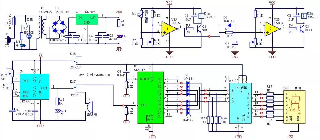 最后,将实际电路与基本原理对照,根据元件在电路中的作用,按以上的方法一步步分析, 就不难看懂。当然要真正融会贯通还需要坚持不懈地学习,有了一定的理论后分析电路图就不费力了。