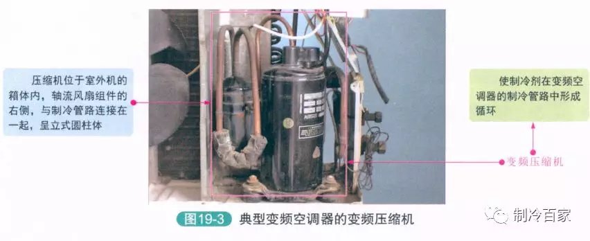 变频压缩机是变频空调器中最为重要的部件,它是变频空调器制冷剂循环的动力源,使制冷剂在变频空调器的制冷管路中形成循环,下图为典型变频空调器的变频压缩机: