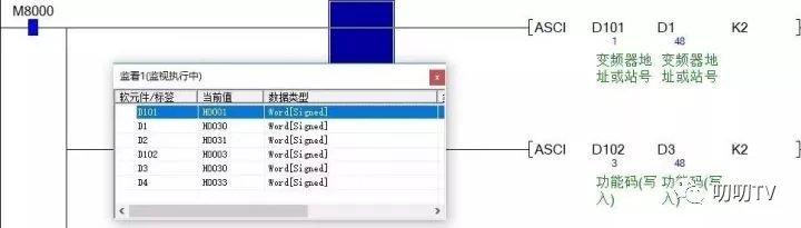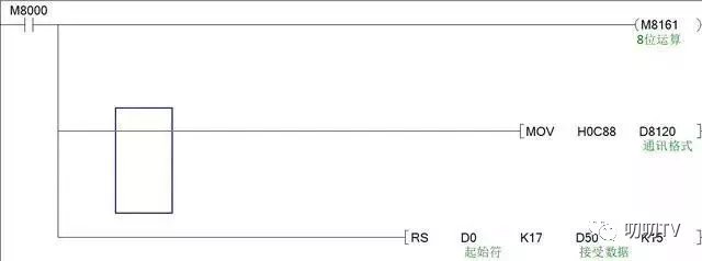 梯形图参数设置 M8161=1,为8位运算,意思就是忽略高8位只传送数据的低8位,为什么这么做后面会说到。MOV HOC88 D8210是指定通讯格式,它是怎么算出来的,我们看下D8120内容: