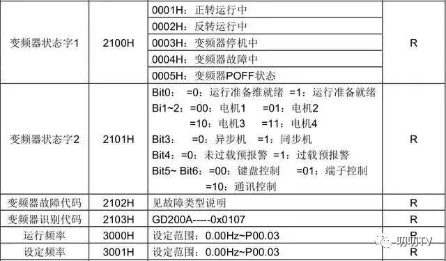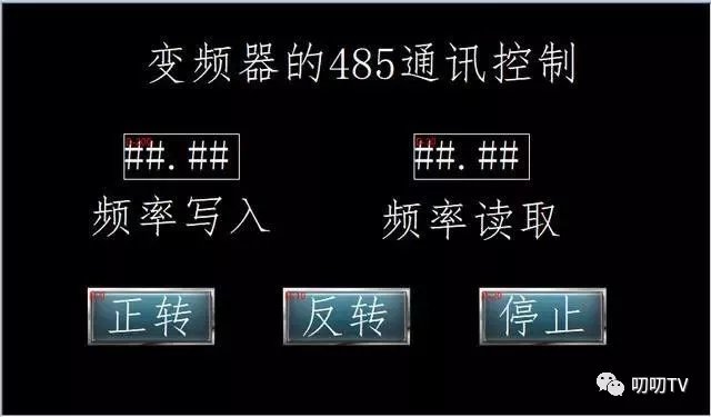 数据读取 意思就是读取数据时, 必须在送信、 回信、写入指令意外完成。查看变频器功能表, 读取频率的地址是3000H。 HMI界面: