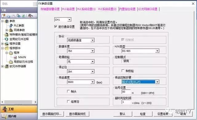 D8120内容 D8210是一个16位的数据,根据设定的参数来算计算,比如上述程序的H0C88是怎么来的,看下通讯方式是,波特率9600,7位数据长度,无奇偶校验,停止位是2,控制线是无协议的调制解调器模式(RS485接口):