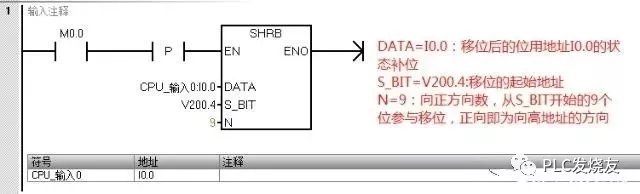 综上所述,每当M0.0有一个上升沿到来时,从V200.4开始向高地址方向数的9个位会朝高地址方向移位,I0.0的状态会被送到V200.4中。