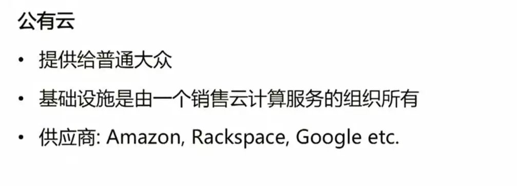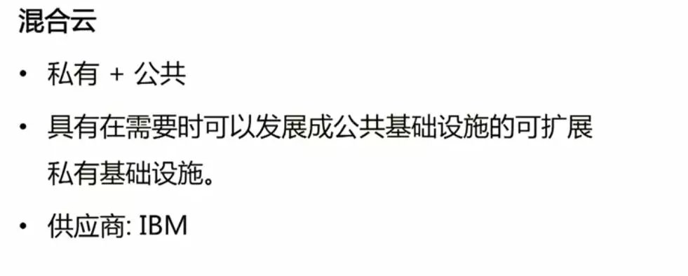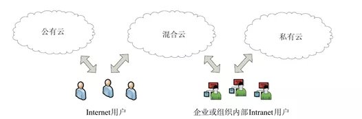 云计算的概念--分类服务方式 共有云为外部提供服务外部的企业。不受企业管理。 私有云企业内部、关注有效的利用企业内部的资源 混合云企业不仅用到共有云而且使用私有云这种方式更注重的是共有云与私有云的连接沟通。