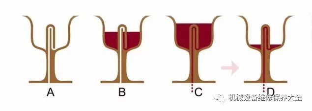 原理:当水箱里的排水阀被打开,水流会分散流经桶身周围呈特殊角度的十余个布水孔,最后形成一股大水流强力冲刷排泄物。马桶的下水管道有S形的弯曲,这里利用了虹吸原理。 马桶内水面高过下水管道内水面,这就产生了虹吸现象,在重力作用下,水流和污物一同被吸走。而当虹吸现象停止后,S形管道的弯里还留存着一些清水,这有效阻隔了来自下水管道的恶臭。每次冲水时水封都会被更新,这也保证了抽水马桶的卫生。 值得一提的是,有一种被称为“毕达哥拉斯杯”或者“公道杯”的小东西和抽水马桶的虹吸原理几乎一模一样。这种杯子一旦被倒得太满,其中的液体就会流光: 公道杯原理示意图 1778年,约瑟夫·布拉梅改良的抽水马桶 花絮:从改进了抽水马桶之后,布拉梅在发明和改良的道路上一发不可收拾,从此变身发明大王。 由于布拉梅想要不断改进锁的精度,他顺手钻研并优化了当时的加工机床。在这之后,他还改良了啤酒泵、刨床、造纸机、消防车以及马车……从1778年到1812年,布拉梅的设计共获得了18项专利,而这其中最重要的发明是在现代机械装备中已然不可或缺的液压机。 液压机 液压机的设计基于帕斯卡原理(F1/S1=F2/S2),在封闭的液压系统内,一个活塞上施加一定的压力,将在另一个活塞上产生相同的压力增量。 如果第二个活塞的面积是第一个活塞面积的5倍,那么作用于第二个活塞上的力,将增大为原来的5倍,而两个活塞上的压强仍然相等。 液压机基本原理示意图 布拉梅设计的液压机可以算作原型机,当时封闭在液压缸内的介质还是——水。这之后油基介质以润滑和粘度方面的出色性能逐渐取代了水基,现在市面上常见的液压液一般都是抗燃液压油,且带有颜色,使得渗漏很容易被发现。经过这200余年的发展,如今大到挖掘机开山挖路,小到汽车后备箱开合,液压机械的应用处处可见。 液压机不仅处处可见,甚至还成了网红……在youtube上,致力于压坏一切的视频博主Hydraulic Press Channel吸引了不少眼球。本图中不幸遇难的是一个保龄球。 看完这些日常生活中的机械原理,有没有对这些设施更熟悉一点,也欢迎留言跟大家分享有意思的东西。