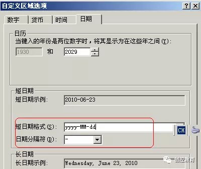 具体查看时间格式的方法,打开操作系统的“控制面板”,点击“区域和语言选项”,在“区域选项”中点击“自定义”按钮,在“自定义区域选项”中查看“时间格式”(图13)以及“日期格式”(图14)。所赋值的开始时间/结束时间必须按照此格式拼写,请注意小时H/h的大小写(24小时制),以及分隔符的选择。
