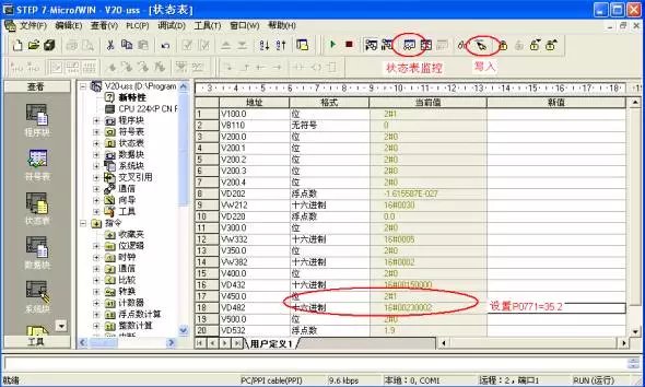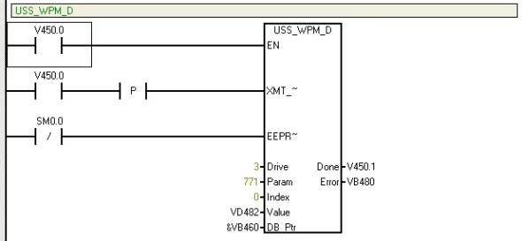 (2)只要给V450.0一个上升沿,就完成一次P771参数的写操作。