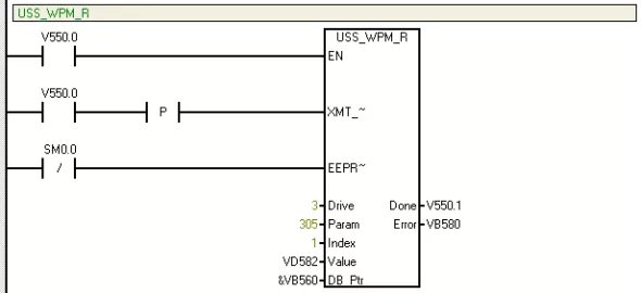 (2)只要给V550.0一个上升沿,就完成一次参数P0305.In001的写操作。