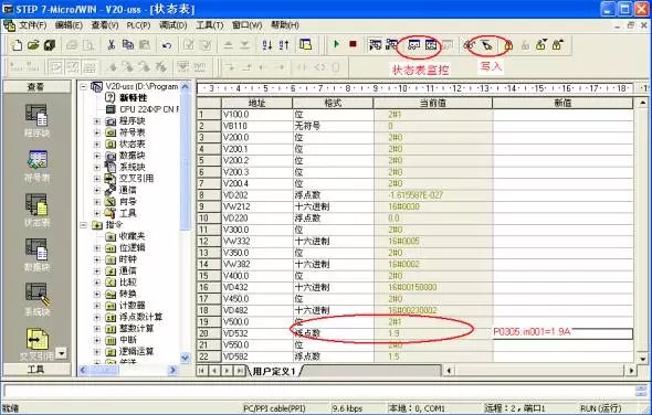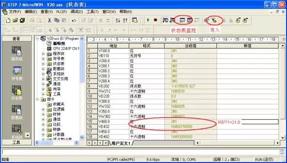 (3)读入的参数被放在VD432里。16#00150000=21.0。