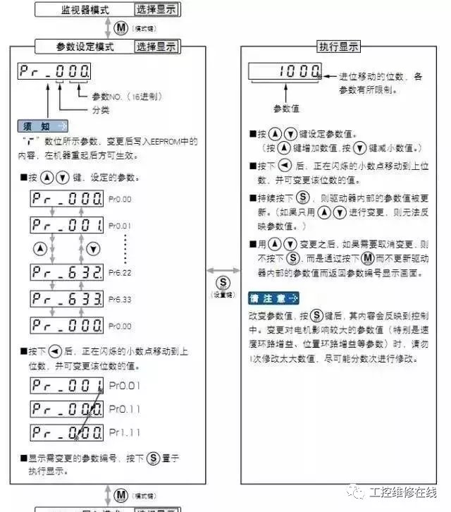 伺服旋转方向切换。常常有这样的情形,伺服驱动需要调换旋转方向,只需要将Pr0.00中的值由“1”改为“0”,或由“0”改为“1”(出厂值是“1”)。