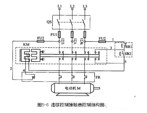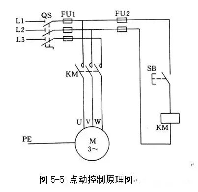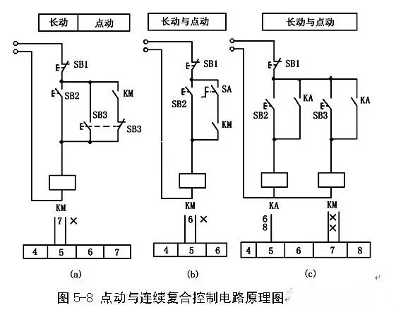 点动控制指需要电动机作短时断续工作时,只要按下按钮电动机就转动,松开按钮电动机就停止动作的控制。实现点动控制可以将点动按钮直接与接触器的线圈串联,电动机的运行时间由按钮按下的时间决定。点动控制是用按钮、接触器来控制电动机运转的最简单的正转控制线路,生产机械在进行试车和调整时通常要求点动控制,如工厂中使用的电动葫芦和机床快速移动装置、龙门刨床横梁的上、下移动,摇臂钻床立柱的夹紧与放松,桥式起重机吊钩、大车运行的操作控制等都需要单向点动控制。 01电气控制原理图 ![]() 想一想:点动! 连续运行怎么办? ![]() 在图5-4和5-5电路中,其主要原理是当按下按钮SB时,交流接触器的线圈KM得电,从而使接触器的主触点闭合,使三相电进入电动机的绕组,驱动电动机转动。松开SB时,交流接触器的线圈失电,使接触器的主触点断开,电动机的绕组断电而停止转动。实际上,这里的交流接触器代替了闸刀或组合开关使主电路闭合和断开的。 02电路控制动作过程 (1)启动:先合上电源开关QS,按下按钮SB→交流接触器KM线圈得电→KM主触点闭合→电动机M转动。 (2)停止:松开按钮SB→交流接触器KM线圈失电→KM主触点断开→电动机M停止。 03电动机的转动特点 按下SB,电动机转动;松开SB,电动机停止转动,即点一下SB,电动机转动一下,故称之为点动控制。 02三相异步电动机单方向连续控制线路 生产机械连续运转是最常见的形式,要求拖动生产机械的电动机能够长时间运转。三相异步电动机自锁控制是指按下按钮SB2,电动机转动之后,再松开按钮SB2,电动机仍保持转动。其主要原因是交流接触器的辅助触点维持交流接触器的线圈长时间得电,从而使得交流接触器的主触点长时间闭合,电动机长时间转动。这种控制应用在长时连续工作的电动机中,如车床、砂轮机等。 01电气控制结构图和原理图 点动控制电路中加自锁(保)触点 KM,则可对电动机实行连续运行控制。电路工作原理:在电动机点动控制电路的基础上给启动按钮SB2并联一个交流接触器的常开辅助触点,使得交流接触器的线圈通过其辅助触点进行自锁。当松开按钮SB2时,由于接在按钮SB2两端的KM常开辅助触头闭合自锁,控制回路仍保持通路,电动机M继续运转。电气控制原理如下图5-6、图5-7所示。 ![]() ![]() 想一想:点动+连续运行怎么办? 02动作过程 先合上电源开关QS。 (1)启动运行。按下按钮SB2→KM线圈得电→KM主触点和自锁触点闭合→电动机M启动连续正转。 (2)停车。按停止按钮SB1→控制电路失电→KM主触点和自锁触点分断→电动机M失电停转。 (3)过载保护。电动机在运行过程中,由于过载或其他原因,使负载电流超过额定值时,经过一定时间,串接在主回路中热继电器FR的热元件双金属片受热弯曲,推动串接在控制回路中的常闭触头断开,切断控制回路,接触器KM的线圈断电,主触头断开,电动机M停转,达到了过载保护的目的。 03三相异步电动机单方向点动与连续混合控制的控制电路 01连续与点动混合正转控制线路原理图 在生产实践过程中,机床设备正常工作需要电动机连续运行,而试车和调整刀具与工件的相对位置时,又要求“点动”控制。为此生产加工工艺要求控制电路既能实现“点动控制” 又能实现“连续运行”工作。 用途:试车、检修以及车床主轴的调整和连续运转等。 方法一:用开关,如图5-8a。 方法二:用复合按钮,如图5-8b。 方法三:用中间继电器,如图5-8c。 ![]() 其主电路和连续控制电路相同。 02用复合按钮实现连续与点动混合控制过程 如图5-8a所示,线路的动作过程:先合上电源开关QS,点动控制、长动控制和停止的工作过程如下。 (1)点动控制。按下按钮SB3→SB3常闭触点先分断(切断KM辅助触点电路)。SB3常开触点后闭合(KM辅助触点闭合)→KM线圈得电→KM主触点闭合→电动机M启动运转。 松开按钮SB3→SB3常开触点先恢复分断→KM线圈失电→KM主触点断开(KM辅助触点断开)后SB3常闭触点恢复闭合→电动机M停止运转,实现了点动控制。 (2)长动控制。按下按钮SB2→KM线圈得电→KM主触点闭合(KM辅助触点闭合)→电动机M启动运转。实现了长动控制。 (3)停止。按下停止按钮SB1→KM线圈失电→KM主触点断开→电动机M停止运转。 关键:断开自锁,实现点动;接通自锁,实现连续运转。 03线路优缺点 线路简单,但动作不够可靠。 请读者自行分析图5-8b和5-8c的工作过程。 除了点动控制电路,在工作中,还会用到各种电路,比如:起保停电路、自锁控制电路、正反转控制电路、降压启动控制电路、启停控制电路等等... 今天游老师就手把手教大家上述电路的看图接线 ![]() 电路图搭配实物图,一边讲原理,一边对照实物接线 ![]() 之后再测试接线结果,确保实操的准确性 |