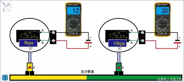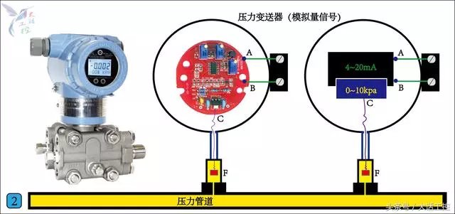 开关量和模拟量是大家学习PLC初期使用最多的两种输入输出方式。什么是开关量?什么是模拟量?这个问题必须弄清楚。 ![]() 图1是一个典型能输出开关量信号的器件。压力高时C和B两个触点闭合接通,输出压力高信号,压力低时C和A两个触点闭合接通输出压力低信号。有了这样的信号就实现把就地的压力信号,远传到远处的电气控制柜去参与自动远程控制了,其中C和B是一个开关量,C和A也是一个开关量。所以一个开关触点就是一个开关量,它的特性是同一时刻要么接通要么断开。接通就是1,代表有有信号,断开就是0,代表没有信号。这就是所谓的开关量信号。 压力表虽然能把压力信号传到远处,但它传输的只是有无压力这样的信号,无法知道实时压力值到底是多少。 ![]() 图2中的器件叫压力变送器。压力变送器的内部就是一块电路板,电路板连接着一个压力传感器F。它的工作原理是压力传感器F把检测到的压力传到电路板的C,检测信号进入电路板后,通过电路板的转换与计算,把这个压力信号转换成一个电流信号由A和B这两个点输出。图中右边就是转换过程的示意图,它可以把一个0-10kpa的压力信号转换成一个4-20mA的电流信号,由A和B这两个点输出。这时我们就说A和B这两个点输出的就是一个模拟量信号。模拟量信号的特点是它的值是在一个数值范围内是连续可变的。 下面看一下模拟量信号是如何进行远距传输的。 ![]() 我们管道上安装一块量程为0-10kpa的压力变送器,电源正极接压力变送器的B点,负极串联一块万用表到压力变送器的A点,并将万用表打到电流档。当压力变送器C点的压力是5kpa时,万用表的的电流读数是12mA。正好是4-20mA的电流信号的中间值,而5kpa也正好是0-10kpa压力值的中间值。当压力变送器C点的压力是10kpa时,万用表的的电流读数正好是20mA。这样0-10kpa压力值就对应了4-20mA的电流信号值,我们只要在远方通过一个接受设备把这个4-20mA的电流信号值提取出来,再通过一定的计算,就能知道就地的压力值是多少了。 为什么要把压力信号转换成4-20mA的电流信号,而不是0-20mA的电流信号或0-10V的电压信号? 1.0-10V的电压信号容易受到外界的电磁干扰,特别是电缆长度很长时干扰更明显。 2.用0-20mA的电流信号的话,就无法判断在电流信号是0mA时,到底是电缆断线引起的故障0mA,还是压力本身就是0kpa而输出的正常的0mA。 ![]() 图4是使用西门子S7-200 PLC读取压力变送器压力值的接线图例,这是一种最基本的使用方法,左边是开关量的,右边是模拟量的,不同的信号类型要接到PLC不同输入端。 今天就说到这了。大家都看明白了吗? ![]() |