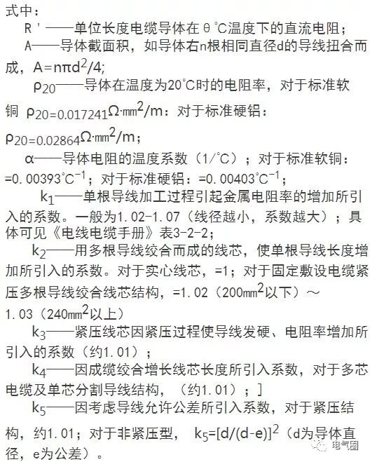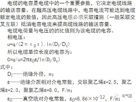电缆及附件的设计必须满足额定电压、雷电冲击电压、操作冲击电压和系统最高电压的要求。其定义如下: 额定电压 额定电压是电缆及附件设计和电性试验用的基准电压,用U0/U表示。 U0——电缆及附件设计的导体和绝缘屏蔽之间的额定工频电压有效值,单位为kV; U——电缆及附件设计的各相导体间的额定工频电 压有效值,单位为kV。 雷电冲击电压 UP——电缆及附件设计所需承受的雷电冲击电压的峰值,既基本绝缘水平BIL,单位为kV。 操作冲击电压 US——电缆及附件设计所需承受的操作冲击电压的峰值,单位为kV。 系统最高电压 Um——是在正常运行条件下任何时候和电网上任何点最高相间电压的有效值。它不包括由于故障条件和大负荷的突然切断而造成的电压暂时的变化,单位为kV。 定额电压参数见下表(点击放大) ![]() 330kV操作冲击电压的峰值为950kV;500kV操作冲击电压的峰值为1175kV。 2. 导体电阻2.1导体直流电阻 单位长度电缆的导直流电阻用下式计算: ![]() ![]() 20℃导体直流电阻详见下表(点击放大): ![]() 以上摘录于《10(6)kV~500kV电缆技术标准》(Q∕GDW 371-2009 )。 2.2 导体的交流电阻 在交流电压下,线芯电阻将由于集肤效应、邻近效应而增大,这种情况下的电阻称为有效电阻或交流电阻。 电缆线芯的有效电阻,国内一般均采用IEC-287推荐的公式 : R=R′(1+YS+YP) 式中: R——最高工作温度下交流有效电阻,Ω/m; R′——最高工作温度下直流电阻,Ω/m; YS——集肤效应系数,YS=XS4/(192+0.8XS4), XS4=(8πf/R′×10-7kS)2; YP——邻近效应系数,YP=XP4/(192+0.8XP4)(Dc/S)2{0.312(Dc/S)2+1.18/[XP4/(192+0.8XP4)+0.27]},XP4=(8πf/R′×10-7kP)2。 XS4——集肤效应中频率与导体结构影响作用; XP4——邻近效应中导体相互间产生的交变磁场影响作用; f——频率; Dc——线芯直径,m; S——线芯中心轴间距离,m; ks——线芯结构常数,分割导体ks=0.435,其他导体ks=1.0; kp——线芯结构系数,分割导体kp=0.37,其他导体kp= 0.8~1.0; 对于使用磁性材料制做的铠装或护套电缆,Yp和Ys应比计算值大70%,即: R=R′[1+1.17(YS+YP)] 3. 电缆的电感3.1自感 则单位长度线芯自感: Li=2W/(I2L)=μ0/(8π) =0.5×10-7 式中: Li——单位长度自感,H/m; μ0——真空磁导率,μ0=4π×10-7,H/m; 以上一般是实心圆导体,多根单线规则扭绞导体如下表: ![]() 因误差不大,计算一般取Li=0.5×10-7H/m。 3.2高压及单芯敷设电缆电感 对于高压电缆,一般为单芯电缆,若敷设在同一平面内(A、B、C三相从左至右排列,B相居中,线芯中心距为S),三相电路所形成的电感根据电磁理论计算如下: 对于中间B相: LB=Li+2ln(2S/Dc) ×10-7 ( H/m) 对于A相: LA=Li+2ln(2S/Dc) ×10-7 -α(2ln2 )×10-7 (H/m) 对于C相: LC=Li+2ln(2S/Dc) ×10-7 -α2(2ln2 )×10-7 (H/m) 式中: 实际计算中,可近似按下式计算: LA=LB=LC=Li+2ln(2S/Dc) ×10-7 ( H/m) 同时,经过交叉换位后,可采用三段电缆电感的平均值,即: L=Li+2ln(2×(S1S2S3)1/3/Dc) ×10-7 ( H/m) =Li+2ln(2×21/3S/Dc) ×10-7 ( H/m) 对于多根电缆并列敷设,如果两电缆间距大于相间距离时,可以忽略两电缆相互影响。 3.3 三相电缆的电感 主要计算中低压三相电缆三芯排列为“品”字形电缆。根据电磁场理论,三芯电缆工作电感为: L=Li+2ln(2S/Dc) ×10-7 式中: L——单位长度电感,H/m; S——电缆中心间的距离,m; 若三芯电缆电缆中心间的距离不等距,或单芯三根品字排列时三相回路电缆的电感按下式计算: ![]() 式中: S1、S2、S3——电缆各相中心之间的距离,m。 4. 电缆金属护套的电感4.1三角排列 三根单芯电缆按等边三角形敷设的三相平衡负载交流回路,护套开路,每相单位长度电缆金属护套的电感为: Ls=2ln(S/rs) ×10-7 ( H/m) 式中: rs——电缆金属护套的平均半径,m。 4.2等距直线排列 三根单芯电缆按等距离平面敷设的三相平衡负载交流回路,护套开路,每相单位长度电缆金属护套的电感为: 对于中间B相: LSB=2ln(S/rs) ×10-7 ( H/m) 对于A相: LSA=2ln(S/rs) ×10-7 -α(2ln2 )×10-7 (H/m) 对于C相: LSC=2ln(S/rs)×10-7 -α2(2ln2 )×10-7 (H/m) 式中: ![]() ![]() 三相平均值: LS=2ln(S/rs)×10-7 +2/3▪ln2 ×10-7 (H/m) 4.3 任意直线排列 三根单芯电缆平面敷设的三相平衡负载交流回路,电缆换位,护套开路,每相单位长度电缆技术护套的电感为: LSB=2ln(((S1S2S3)1/3)1/3/rs) ×10-7 ( H/m) 5. 电缆电抗、阻抗及电压降5.1电抗 电缆的电抗为: X=ωL ( Ω/m) 式中: L——电缆单位长度的电感,H/m; ω=2πf。 5.2阻抗 电缆的阻抗为: Z=(R2+X2)1/2 ( Ω/m) 式中: R——电缆单位长度的交流有效电阻,Ω/m。 5.3 电压降 电缆的电压降为: △U=IZl ( V) 式中: I——导体电流,A; l——电缆长度,m。 6. 电缆的电容 ![]() 7. 计算实例 一条电缆型号YJLW02-64/110-1X630长度为2300m,导体外径Dc=30mm,绝缘外径Di=65mm,电缆金属护套的平均半径rs=43.85,线芯在20°C时导体电阻率 ρ20=0.017241×10-6Ω·m ,线芯电阻温度系数α=0.00393℃-1 ,k1k2k3k4k5≈1,电缆间距100mm,真空介电常数ε0=8.86×10-12 F/m,绝缘介质相对介电常数ε=2.5,正常运行时载流量420A。计算该电缆的直流电阻,交流电阻、电感、阻抗、电压降及电容。 计算如下: 1.直流电阻 根据直流电阻公式: ![]() 得: R'=0.017241×10-6(1+0.00393(90-20))/(630×10-6) = 0.3489×10-4 (Ω/m) 该电缆总电阻为R=0.3489×10-4×2300 = 0.08025(Ω) 2.交流电阻 由公式YS=XS4/(192+0.8XS4),XS4=(8πf/R′×10-7kS)2得: XS4=(8×3.14×50/0.3489×10-4)×10-14= 12.96 YS=12.96/( 192+0.8×12.96) = 0.064 由公式XP4=(8πf/R′×10-7kP)2得: XP4=(8×3.14×50/0.3489×10-4)×10-14= 12.96 由公式YP=XP4/(192+0.8XP4)(Dc/S)2{0.312(Dc/S)2+1.18/[XP4