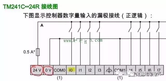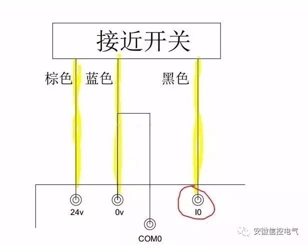 由于plc的输入分为NPN输入和PNP输入两种类型,因此,接近开关也分为NPN和PNP两种类型,只有接近开关的类型和PLC的输入类型接法一致时,当有物体接近的时候,PLC才会有输入信号。一般日韩系的接近开关默认是NPN型,欧美系的接近开关默认是PNP型,接近开关不同于PLC ,无论是日韩系还是欧美系,每一款接近开关都有NPN和PNP两种类型。而PLC不可能有NPN型和PNP型,这是因为PLC 的极性可以通过接线改变,而接近开关一旦固定,是无法更改的。 ![]() 图一 接近开关 如图一所示,这就是常见的接近开关,它为圆柱形,一般来说,它的直径越粗,检测距离越远。 根据检测物体的不同,接近开关分为电感性和电容性两种,电感性接近开关是利用霍尔效应,检测磁场的变化,由于金属才能引起磁场的变化,因此电感性接近开关主要检测金属主要是钢铁。电容性接近开关实质是一个电容的极板,当被检测物体接近时,整个电容的介电常数发生变化,于是就认为有物体接近,因此,电容性接近开关即可以检测金属,也可以检测非金属,但是一般我们都是用电感性接近开关检测金属,因此,大家都默认电容性接近开关用于检测非金属。比如陶瓷,纸张,木材等。 ![]() 图二 接近开关的现场应用 如图二所示,是接近开关在工业现场的实际应用,它一般通过支架固定,当检测物体靠近的时候,它的指示灯会亮,表示接近开关有了输出,同样,如果接线正确,PLC就会有输入信号。接近开关怎样接入PLC的输入点呢?其实它和按钮开关类似,一般接近开关都有三根线,分别是棕色,蓝色和黑色。棕色和蓝色是电源,通常棕色为24V,蓝色为0V。黑色是信号线,接到PLC 的输入,而这个信号正是我们所需要的。 ![]() 图三 PLC 硬件手册 如图三所示,这是PLC 的硬件手册,我们要想把接近开关的信号接到输入点I0上,也就是黄色荧光笔部分,该怎么办呢?其实很简单,看红色圆圈的部分,PLC已经为我们提供了输出电源,我们只需把接近开关的三根线依次接上即可 ![]() 图四 接近开关的实际接线 如图三所示,这是PLC 的实际接线,黄色荧光笔标识的是接近开关的三根接线,棕色和蓝色分别接到PLC 的24V和0V上,黑色接到I0上。当有物体到达接近开关的感应距离时,PLC的I0便会有输入,我们在程序里就可以做处理。需要注意的是,图中0V和COM0短接,因此,这种接法适合PNP型的接近开关。而NPN型的接近开关按此接法,是不会有任何信号的。接近开关的接线只和NPN,PNP类型有关和感性 容性无任何关系。 还有一点需要注意的是,接近开关要直接接到PLC的输入,中间不要增加任何形式的继电器等转化器件。 ![]() |