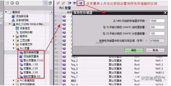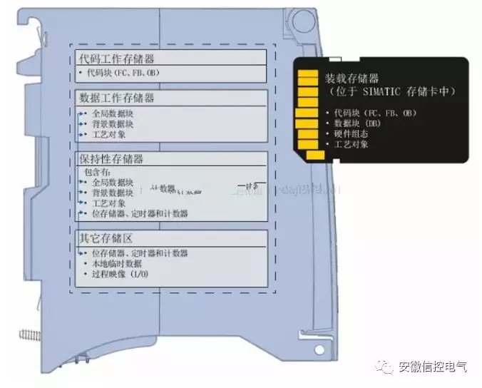 PLC上的存储器与个人电脑上的存储器功能相似,主要用来存储系统程序、用户程序和数据。 根据功能不同可把存储器进行细分,可分为如下几个存储区: 装载存储器区(Load Memory) 工作存储器区(Work Memory) 保存存储器区(Retentive Memory) 系统存储器区(System Memory) 上面四个区域除了装载存储器区是外插SIMATIC存储卡,其他都是CPU内部集成的存储器。 ![]() 1、 装载存储器 在S7-300/400系列PLC中装载存储器也就是外插的MMC卡,这个卡是Flash Memory,断电后卡中的信息不会丢失。对于S7-1500 CPU的装载存储器,只能通过外插存储卡扩展,容量最大支持到32G。 ![]() 装载存储器主要存储项目中的程序块、数据块、工艺对象、硬件配置,就是你用博途编写程序和组态硬件产生的所有数据。 在你下载程序的过程中,首先是存储到装载存储器中,然后再复制到工作存储器中,程序和数据在工作存储器中运行。 对CPU的任何操作都不会让SIMATIC存储卡的用户程序丢失,也不会损坏程序。所以无论你CPU怎么损坏,用户程序是不会丢失的,但是没有了SIMATIC存储卡,即使你买再多的CPU,依然要重写程序。 装载存储器类似电脑的硬盘。 在S7-300/400 PLC中,装载存储器不存储项目中的符号和注释等信息,但是S7-1500 PLC的装载存储器可以保存变量的符号、注释信息以及PLC的数据类型。 西门子SIMATIC存储卡的知识以后专门介绍,这篇文章你知道所谓装载存储器就是S7-300/400上的MMC卡,S7-1500上这张卡叫做SIMATIC存储卡。 2、工作存储器 工作存储器是集成在CPU内部的RAM存储器,容量根据型号确定,不能扩展。所以在选择CPU时除了要考虑指令的处理速度,还要考虑最终程序的大小。如果写完程序发现CPU没法运行,就比较麻烦了。 可分为代码工作存储器和数据工作存储器,分别用来保存与程序运行有关的代码(OB/FC/FB)和数据块(DB)。 工作存储器类似个人电脑中的内存条,断电时数据会丢失,恢复供电时CPU会从装载存储器复制数据到工作存储器。 ![]() 3、系统存储器 系统存储器与工作存储器一样,都是集成在CPU内部的RAM存储器,数据掉电丢失,容量不能扩展。系统存储器主要包括: 输入过程映像区(I区) 输出过程映像区(Q区) 位存储区(M区) 定时器区(T区) 计数器区(C区) 局部数据区(L区) I/O外设存储器 以上存储区如果你不理解什么意思,自己找资料看看,都是基础知识,不赘述了。 系统存储器是CPU系统运行用来处理数据的,编程的时候很少能操作系统存储器,所以知道有这么个存储器就可以了。 4、保持存储器 保持存储器是集成在CPU内部的非易失存储器,通过参数设置可以使一部分数据掉电不丢失。 M、T、C和数据块内的数据,默认情况掉电会复位,可通过参数设置成可保持,那么在掉电时数据会保存到保持存储器中。 下图是如何设置保持存储器,简单看以下,以后还会专门讲解。 ![]() 设置M/T/C存储器的保持性 ![]() 设置DB块保持性 5、查看存储器 这些存储器在博途软件中,可通过项目树中的“程序信息”下查看相关信息。在“资源”选项卡中,能显示存储区总空间大小和已分配存储空间的信息。 对于S7-1500 CPU,可在下拉列表中指定装载存储器的总大小。 ![]() 以上就是S7-1500存储器相关的知识,如果你学习过《计算机原理》,理解这些应该很简单。没有基础的多看遍,像这样的基础知识掌握扎实了,会在编程时避免很多错误。 ![]() |