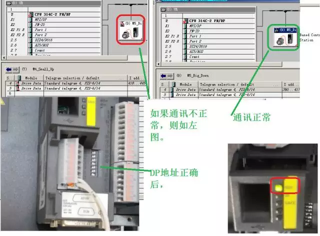 1.7 查看状态,设置DP地址,直至RDY黄灯常亮 BF消失;如果BF红灯一直闪烁,则检查插头