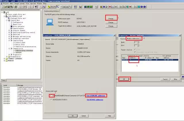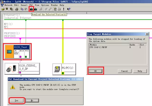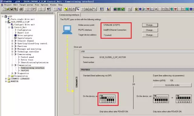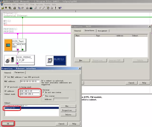 2, 如果采取网线连接PLC,则设置路由访问G120,如下图:网上也有详细资料 也可以电脑直接5711等直接连到G120的DP口进行驱动配置。 2.1 插入站点