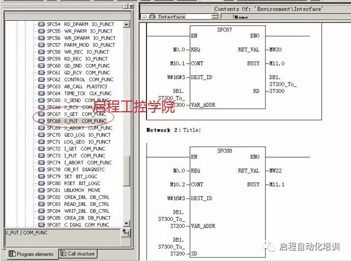 图2 例子程序在OB1 当中调用数据读写功能块:SFC67 和SFC68,如下图: