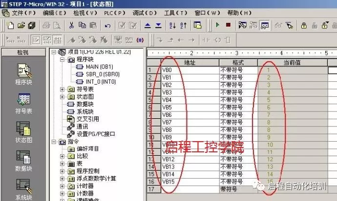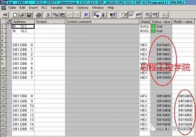 图3 分别在STEP7 MicroWin32 和STEP7 当中监视S7200 和S7300 PLC 当中的数据,数据监视见面如下: