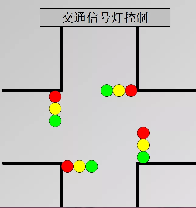 一、交通信号灯控制 十字路口简单的交通信号灯布置如图 控制要求:由于东西方向的车流量较小、南北方向的车流量较大,所以南北方向的放行时间为30s,东西方向的放行时间为20s。当东西(或南北)方向的绿灯灭时,该方向的黄灯与南北(或东西)方向的红灯一起以1HZ的频率闪烁5s,然后立刻开始另一个方向的放行。当启动开关转向开始位置时,信号灯便以上述模式开始工作,启动开关转回到停止位置时,信号灯全部熄灭。 : 试题分析