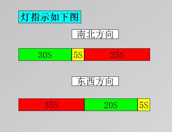 4、南北黄灯熄灭后,触发南北方向红灯20s常亮,接着触发南北红灯闪烁5s。