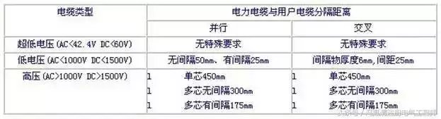 强电这一概念是相对于弱电而言,一般并无电压电流的具体界限划分。电子类人们习惯分为强电(电力)和弱电(信息)两部分。两者既有联系又有区别,一般来说强电的处理对象是能源(电力),其特点是电压高、电流大、功率大、频率低,主要考虑的问题是减少损耗、提高效率。 弱电的处理对象主要是信息,即信息的传送和控制,其特点是电压低、电流小、功率小、频率高,主要考虑的是信息传送的效果问题,如信息传送的保真度、速度、广度、可靠性。一般来说,弱电工程包括电视工程、通信工程、消防工程、保安工程、影像工程等等和为上述工程服务的综合布线工程。 一、强电弱电布线距离要求 强电弱电布线距离是有要求的 是因为强电周围有磁场,如果强电弱电布线距离过近就会对弱电的信号产生影响,具体表现为:如果是电视线,信号就不会很清楚;如果是电话线,电话就会出现杂音;如果是网线,网络传输速度就会受到影响等等。 ![]() 因此,在强弱电布线时,一定要遵循如下强电弱电布线距离要求: 1、用户电缆不能与高压(AC>1000V,DC>1500V)电缆一起(捆绑)走线。通信电缆的终端与高压电缆的终端最小间隔450mm。 2、用户电缆一般情况下避免与低压(AC<><> 3、用户电缆可以允许与超低压(AC<><> 4、用户电缆应与一些有害设备(诸如:避雷器、腐蚀性流体、温度超过60℃的物体等等)分隔,且其间距不得少于150mm。 5、电力电缆与用户电缆布线分隔参见下图。 ![]() 6、低压电缆与通信电缆交叉时预防噪音的分隔参见下图。 ![]() 二、强电对弱电的干扰 电网运行正常时,在不发生单相接地故障的情况下,一般是不存在强电对弱电造成的电磁干扰问题。但是当电网运行中发生单相接地故障时,不同的中性点接地方式电网,对弱电系统的电磁干扰程度就会有明显的不同,这表明电网中性点接地方式与其对通讯系统造成的干扰有着密切的关联。 电网运行中若发生单相接地故障时,在接地点必将产生较大接地电流,该电流通过电磁耦合,静电耦合,地中电流传导等形式对通讯系统造成干扰,且干扰程度随接地电流的大小而变化。它的主要表现形式为:音频干扰、工频干扰、接触干扰和纵向电势等。 电网发生单相接地故障时,若电力线与通讯线存在平行走向时,电磁耦合产生的感应电压会对平行走向通讯系统造成干扰影响;或当电力线导线一相、两相断线后直接搭在通讯线上时,通过导线接触从而对通讯系统造成干扰;或电网运行中发生中性点位移而产生较大位移电压,通过电容耦合而对通讯系统造成干扰影响。 强电对弱电造成干扰危害表现为:轻者影响质量,电话回路中杂音增大,信息失真和误码率增多等;重者则危及通讯设备和人身安全。如通讯设备绝缘击穿,机房着火,人员伤亡以及导航指挥信号错乱或误动而导致失误发生事故等。 三、强电弱电布线注意事项 1、电路设计布线阶段,根据强电在上,弱电在下,横平竖直的原则进行,能避免施工时发生交叉,影响使用、美观。 2、各个线路的开槽深度要一直,以所用管道直径为准,增加10mm。 3、在选择电路配线时,需要注意电线能允许通过的最大电流,避免用电设备功率过大导致发热、短路等。通常照明、插座采用2.5mm2,空调电路采用4mm2。 4、暗线铺设需要配置阻燃PVC管,电线的长度达到15m以上或者布线时有2个以上拐弯时,需要增加拉线盒。 5、把PVC管铺设好才统一进行布线,将相同回路的电线置于同一管道中,总数量最好不要超过8根,电线总截面积要低于管道截面积的40%。 6、强电与弱电不穿入同一管道中,分开布线,电源线插座与电视线等弱电插座的距离应该大于500mm。 7、电线要与家中的暖气管道、热水管道、煤气管道距离要在300mm以上,较差距离大于100mm。 8、电源插座要注意左边是接零线,右边是接相线,三孔上方接地线。 9、有安装吊灯且重量在3kg以上的,需要在吊顶中装后置埋件,再进行吊灯安装。 10、同个空间内的电源、电话、电视等插座面板高度应该一致,相差不大于5mm。 11、每个插座的高度要根据情况改变,电源插座最好是300mm,平开关板距离地面最好是1300mm,空调插座距离地面1900mm,厨房的最好950mm,洗衣机用的是1000mm,电视机650mm。 12、电线与电线之间对地电阻要大于0.5MΩ。 13、强电弱电应该有单独的配电箱,有漏电保护器。 14、安装开关,面板,插座及灯具后要注意清洁,最好是在最后一次涂乳胶漆之前安装。 ![]() |