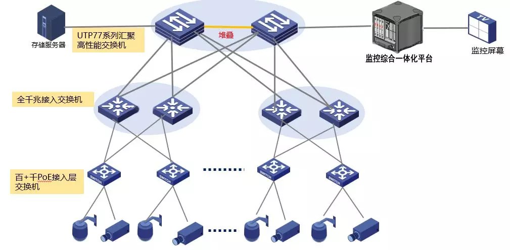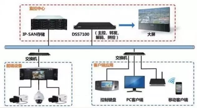 经常有朋友提到,大型监控项目该如何来设计?比如1000路监控该如何规划呢?本期我们主要从硬件配置的角度来探讨,如何实现1000路视频监控应用。 ![]() 要实现1000路监控显示,主要有四个问题: 1、用什么摄像机? 2、1000路监控如何选择交换机?如何组网? 3、1000路如何合理安排存储? 4、1000路监控如何显示? 我们来逐一分析。 一、用什么摄像机 如何选择摄像机,1000路大型监控项目中,可能用到的摄像机不止一种,需要根据环境会选择不同的摄像机,我们来看下各摄像机的用途。我们常用的会根据摄像机的外形进行分类。 ![]() 1、枪式摄像机:吊装、壁装均可,室外安装一般要加配防护罩。一般安装在通道内,厂房或者停车场等室外区域。主要应用于没有灯光或照度低的地下库、仓库、监控城市道路、小区室外环境等。 2、球型摄像机:实际上就是“一体化机芯(变焦镜头+摄像机)+护罩+云台+云台协议解码器”,一般使用在室外或者室内面积比较大、范围比较广的场合。 3、半球形摄像机:安装方式是吸顶安装。大多用于室内小范围的监控场合,没有灯光或者灯光较暗的半公共区、酒店走廊、医院、小区、电梯、室内大厅等场所。 4、红外一体机:红外一体是一种具备红外夜视探照头的监控摄像机。 该摄像机已经广泛的应用于日夜及大范围摄像的环境,如:小区,超市,广场,银行,工厂,军营学校等场所。 实际项目中,可根据应用场景来选择合适的摄像机。另外,摄像机有不同分辨率,对应码率也不一样,在实际选型的时候也需要注意,具体参照图2。 ![]() 图2常见摄像机分辨率、码率关系对照参考表 二、如何选择交换机组网? 1000路的监控项目,其重点就是交换机的选择了,这里我们选用三层网络结构,网络结构为接入层‐汇聚层‐核心层。相对两层网络架构,三层架构网络组网规模更大,传输距离更远,网络可拓展性更强。 拓扑图如下: ![]() 图3 1000路视频传输系统拓扑图 那么各层交换机如何选择呢? 1000路的大型监控系统,如果交换机分配不合理,时常会出现卡顿或掉线,甚至造成系统瘫痪。所以合理的选择和分配接入层、汇聚层、核心层交换机至关重要。 一、1000路监控接入层交换机的选择 接入层是前端采集设备与传输系统的接口,交换机需易于使用和安装,同时兼具安全性,确保入口数据的安全。当然在设计上,主张使用性价比高的设备。接入层交换机选型设计注意要点如下: