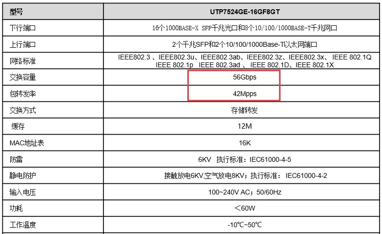 UTP7748GE-L3提供48个千兆下行端口和2个万兆上行链路以及2个万兆堆叠端口,背板带宽高达352G,最多支持6台设备堆叠,堆叠系统交换容量最高可达2112Gbps。