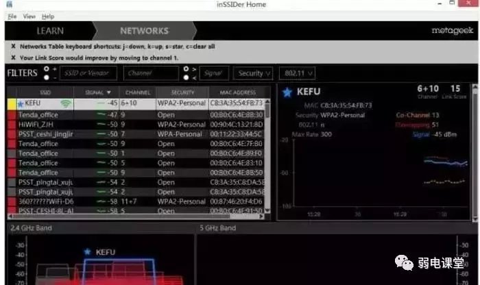 有朋友wifi测试软件有哪些?WiFi信号和声音一样,强弱都是可以测量的,检测WiFi的方法有很多,作为普通的家庭用户,我们有时需要测试WiFi的速度、信号强度、周围WiFi干扰等等,那么wifi信号如何检则呢?如何解决wifi信号不好的问题呢?我们今天来看下。 首先我们来看下wifi的检测工具有哪些,主要有以下四款检测软件。 一、检测wifi工具软件有哪些 1、wifi魔盒 WiFi魔盒可以测试网络安全、上网体验、信号质量等问题,使用简单,数据一目了然。 还集成很多无线工具, 漫游测试、ping、设备扫描、测网速、单点测试、测wifi、图形测试、telnet、设备配置、蓝牙遥控、网优报告等是不错的工具。 下面是显示数据: ![]() 2、wifi分析仪 WiFi Analyzer是一款手机端的无线信号分析器。该软件通过不同的信号查看模式,让用户非常直观的看到每个WiFi信号的详细情况,例如:当前区域WiFi的信号强度和信道曲线图,代表WiFi信号强度的抛物线顶点越高代表WiFi信号越强。这款软件既实用又易用,不过,这款软件仅支持安卓系统的手机,iOS系统暂不支持。 ![]() 3、inSSIDer inSSIDer是一款免费的WIFI信号检测软件,它可以搜索附近的热点,收集每个无线网络的详细信息。除了提供信号强度、信道等基本功能外,它还能搜索到加密方式,最大速率以及 MAC 地址等信息。此外,在这些基本信息的右边,还可以查看每个时间段不同WiFi的信号强度和稳定性(纵坐标:信号强度,横坐标:时间段),其中纵坐标越高,表明信号强度越强,而横坐标越平滑,则表明无线信号越稳定。InSSIDer除了有电脑版外,还有手机版供我们使用,我们来看下电脑版。 ![]() 4、WirelessMon WirelessMon是一款能列出周边所有无线路由器、无线AP或基站的信号强度、信道等实时信息的测试工具,特别是“使用的信道”这一块,你可以清楚的看到当前信道的拥挤情况,是调整信道避免同频干扰的重要依据,是一款无线覆盖工程必备的测试工具。 ![]() 如果我们觉得信号不好的话,可以先在路由器中调整下信道避免干扰。如果还是无法解决的问题,那么就需要通过其它的方法来解决了。 二、如何解决wifi信号不好,实现全面覆盖 首无我们来看下,无线信号为什么会弱? 无线信号是通过电磁波在空中传输的,路由器和终端(如手机、笔记本等)之间的障碍物会对信号传输造成很大衰减,比如承重墙、隔墙、挡板、家具等,穿过的障碍物越多信号越弱。 有的信号变弱可能会跟无线路由器的设备摆放的位置可能有关系,把路由器安放在合适的位置有助于改善信号覆盖,但大多数情况下都跟路由器的位置关系不大,那么如何解决呢? ![]() 方法一、使用无线扩展器放大无线信号 无线扩展器的原理就是把把路由器信号扩展放大。 ![]() 该方案是目前小型环境无线扩展的主流方案。哪里信号比较弱,就在这个位置就近的电源插座上插一个扩展器,不需要连接网线。因为是信号放大器,所以默认是把原来的信号放大,家里的信号还是只有一个,手机、Pad会连接质量较好的信号。 该方案成本低,扩展性好,可以根据实际需要添加数量。但不宜过多,同一个路由器下挂载的扩展器不建议超过5个。设置简单,使用手机三步就搞定。 值得注意的是无线扩展器摆放的位置是放在主路由器和信号较弱区域之间的合适位置。 方法二、无线路由器的桥接 关于无线路由器的桥接我们前面讲过多次,这里的设置方法就不多讲了,直接用个视频更加详细。 该方案使用路由器的无线桥接功能,把多台无线路由器通过无线方式连起来,路由器之间不需要网线连接。TP-LINK路由器在桥接设置方面是比较简单的,通过无线桥接后,网络中也可以实现只有一个信号,起到放大作用。当然,该方案较方案一的优势是副路由器有四个LAN口,可以用来接有线电脑。 方法三、路由器的有线桥接 当家庭的面积比较大,或者是别墅时,一个路由器无法满足无线覆盖,所以经常需要添加路由器2来解决。 1、连接路由器1与路由器2 1、需要一根网线,网线一头连接主路由器(一级路由器)上的任意一个LAN(1/2/3/4)接口,另一头连接路由器2的WAN接口;如图所示: ![]() 在路由器2的设置界面,点击“上网设置”——>“WAN口设置”——>“WAN口连接类型”选择:自动获取ip地址(有的路由器上叫做“动态ip”或“DHCP”)——>点击“保存”。 这里弱电君以tp-link作为路由器2举例(家用的多)。 这里面可以看到,路由器2的wan口自动获取的ip地址是10.168.1.207,和我们的主路由器10.168.1.1是在同一个网段的。 3、设置路由器2的LAN口ip 在路由器2的设置界面,点击“LAN口设置”——>右侧“LAN口IP地址选择:手动“,修改为:192.168.2.1——>点击“保存”,之后会提示重启路由器。 备注: 如果主路由器的ip地址为192.168.1.1的话,那么路由器2的LAN口就设置成192.168.2.1,也就是二级路由器的LAN的ip与主路由器的ip不在同一网段。 这样就完成了二级路由器的连接,路由器2可以正常上网了。 方法四、使用ap/ac扩充无线信号 在别墅或者酒店和企业办公区等大面积环境中,使用AC+无线AP的方式组网,实现很好的覆盖效果。 例如酒店ap分布: 大堂AP布置:酒店大堂空间较大,障碍物比较少,可根据大厅规模部署吸顶式AP。 客房AP布置:一般客房区域选用普通的入墙式或面板式AP就能保障最佳的无线覆盖效果,提供最好的住宿体验。 ![]() 在使用ap的话有几点需要注意: AP应该选择2.4G单频还是2.4G/5G双频? 从