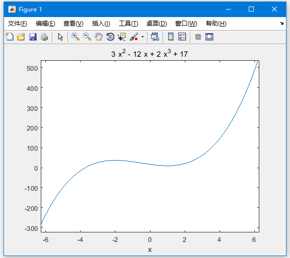 通过将字符串“left”和“right”作为最后一个参数传递给limit命令来计算左侧和右侧的极限。 例子 创建脚本文件并在其中键入以下代码 - f = (x - 3)/abs(x-3);ezplot(f,[-1,5)l = limit(f,x,3,'left')r = limit(f,x,3,'right')MATLAB 执行上面示例代码,得到以下结果 - 显示以下输出结果 - Trial>> Trial>> f = (x - 3)/abs(x-3);ezplot(f,[-1,5])l = limit(f,x,3,'left')r = limit(f,x,3,'right')l =-1r =1Shell MATLAB提供用于计算符号导数的diff命令。 以最简单的形式,将要微分的功能传递给diff命令作为参数。 例如,计算函数的导数的方程式 - 例子 创建脚本文件并在其中键入以下代码 - syms tf = 3*t^2 + 2*t^(-2);diff(f)MATLAB 执行上面示例代码,得到以下结果 - Trial>> syms tf = 3*t^2 + 2*t^(-2);diff(f)ans =6*t - 4/t^3Shell 以下是使用Octave 计算的写法 - pkg load symbolicsymbolst = sym("t");f = 3*t^2 + 2*t^(-2);differentiate(f,t)MATLAB 执行上面示例代码,得到以下结果 - ans =6*t - 4/t^3Shell 基本微分规则的验证下面简要说明微分规则的各种方程或规则,并验证这些规则。 为此,我们将写一个第一阶导数f'(x)和二阶导数f“(x)。 以下是微分的规则 - 规则 - 1 对于任何函数f和g,任何实数a和b是函数的导数: h(x) = af(x) + bg(x)相对于x,由h’(x) = af’(x) + bg’(x)给出。 规则 - 2 sum和subtraction规则表述为:如果f和g是两个函数,则f'和g'分别是它们的导数,如下 - (f + g)' = f' + g'(f - g)' = f' - g'规则 - 3 product规则表述为:如果f和g是两个函数,则f'和g'分别是它们的导数,如下 - (f.g)' = f'.g + g'.f规则 - 4 quotient规则表明,如果f和g是两个函数,则f'和g'分别是它们的导数,那么 - 规则 - 5 多项式或基本次幂规则表述为:如果y = f(x)= x^n,则 - 这个规则的直接结果是任何常数的导数为零,即如果y = k,那么为任何常数 - f' = 0规则 - 5 chain规则表述为 - 相对于x的函数h(x)= f(g(x))的函数的导数是 - h'(x)= f'(g(x)).g'(x)MATLAB 例子 syms xsyms tf = (x + 2)*(x^2 + 3)der1 = diff(f)f = (t^2 + 3)*(sqrt(t) + t^3)der2 = diff(f)f = (x^2 - 2*x + 1)*(3*x^3 - 5*x^2 + 2)der3 = diff(f)f = (2*x^2 + 3*x)/(x^3 + 1)der4 = diff(f)f = (x^2 + 1)^17der5 = diff(f)f = (t^3 + 3* t^2 + 5*t -9)^(-6)der6 = diff(f)创建脚本文件并在其中键入以下代码 - MATLAB 执行上面示例代码,得到 以下结果 - f = (x^2 + 3)*(x + 2) der1 = 2*x*(x + 2) + x^2 + 3f = (t^(1/2) + t^3)*(t^2 + 3) der2 = (t^2 + 3)*(3*t^2 + 1/(2*t^(1/2))) + 2*t*(t^(1/2) + t^3)f = (x^2 - 2*x + 1)*(3*x^3 - 5*x^2 + 2)der3 = (2*x - 2)*(3*x^3 - 5*x^2 + 2) - (- 9*x^2 + 10*x)*(x^2 - 2*x + 1) f = (2*x^2 + 3*x)/(x^3 + 1)der4 = (4*x + 3)/(x^3 + 1) - (3*x^2*(2*x^2 + 3*x))/(x^3 + 1)^2f = (x^2 + 1)^17der5 = 34*x*(x^2 + 1)^16f =1/(t^3 + 3*t^2 + 5*t - 9)^6der6 = -(6*(3*t^2 + 6*t + 5))/(t^3 + 3*t^2 + 5*t - 9)^7Shell 以下是对上面示例的Octave写法 - pkg load symbolicsymbolsx=sym("x");t=sym("t");f = (x + 2)*(x^2 + 3) der1 = differentiate(f,x) f = (t^2 + 3)*(t^(1/2) + t^3) der2 = differentiate(f,t) f = (x^2 - 2*x + 1)*(3*x^3 - 5*x^2 + 2) der3 = differentiate(f,x) f = (2*x^2 + 3*x)/(x^3 + 1) der4 = differentiate(f,x) f = (x^2 + 1)^17 der5 = differentiate(f,x) f = (t^3 + 3* t^2 + 5*t -9)^(-6) der6 = differentiate(f,t)MATLAB 指数,对数和三角函数的导数下表提供了常用指数,对数和三角函数的导数, 例子 syms xy = exp(x)diff(y)y = x^9diff(y)y = sin(x)diff(y)y = tan(x)diff(y)y = cos(x)diff(y)y = log(x)diff(y)y = log10(x)diff(y)y = sin(x)^2diff(y)y = cos(3*x^2 + 2*x + 1)diff(y)y = exp(x)/sin(x)diff(y)创建脚本文件并在其中键入以下代码 - MATLAB 执行上面示例代码,得到以下结果 - y = exp(x) ans = exp(x)y =x^9 ans = 9*x^8y = sin(x) ans = cos(x)y = tan(x)ans = tan(x)^2 + 1 y = cos(x) ans = -sin(x)y = log(x) ans = 1/xy = log(x)/log(10) ans = 1/(x*log(10))y = sin(x)^2 ans = 2*cos(x)*sin(x) y =cos(3*x^2 + 2*x + 1) ans = -sin(3*x^2 + 2*x + 1)*(6*x + 2)y = exp(x)/sin(x) ans = exp(x)/sin(x) - (exp(x)*cos(x))/sin(x)^2Shell 以下代码是上面代码的Octave写法 - pkg load symbolicsymbolsx = sym("x");y = Exp(x)differentiate(y,x)y = x^9differentiate(y,x)y = Sin(x)differentiate(y,x)y = Tan(x)differentiate(y,x)y = Cos(x)differentiate(y,x)y = Log(x)differentiate(y,x)% symbolic packages does not have this support%y = Log10(x)%differentiate(y,x)y = Sin(x)^2differentiate(y,x)y = Cos(3*x^2 + 2*x + 1)differentiate(y,x)y = Exp(x)/Sin(x)differentiate(y,x)Shell 计算高阶导数要计算函数f的较高导数,可使用diff(f,n)。 计算函数的二阶导数公式为 - MATLAB MATLAB执行上面代码将返回以下结果 - ans =9*x*exp(-3*x) - 6*exp(-3*x)Shell 以下是使用Octave重写上面示例,代码如下 - pkg load symbolicsymbolsx = sym("x");f = x*Exp(-3*x);differentiate(f, x, 2)MATLAB 例子 在这个例子中,要解决一个问题。由给定函数y = f(x)= 3sin(x)+ 7cos(5x),来找出方程f“+ f = -5cos(2x)是否成立。 创建脚本文件并在其中键入以下代码 - syms xy = 3*sin(x)+7*cos(5*x); % defining the functionlhs = diff(y,2)+y; %evaluting the lhs of the equationrhs = -5*cos(2*x); %rhs of the equationif(isequal(lhs,rhs)) disp('Yes, the equation holds true');else disp('No, the equation does not hold true');enddisp('Value of LHS is: '), disp(lhs);MATLAB 运行文件时,会显示以下结果 - No, the equation does not hold trueValue of LHS is: -168*cos(5*x)Shell 以上是上面示例的Octave写法 - pkg load symbolicsymbolsx = sym("x");y = 3*Sin(x)+7*Cos(5*x); % defining the functionlhs = differentiate(y, x, 2) + y; %evaluting the lhs of the equationrhs = -5*Cos(2*x); %rhs of the equationif(lhs == rhs) disp('Yes, the equation holds true');else disp('No, the equation does not hold true');enddisp('Value of LHS is: '), disp(lhs);MATLAB 查找曲线的最大和最小值如果正在搜索图形的局部最大值和最小值,基本上是在特定地点的函数图上或符号变量的特定值范围