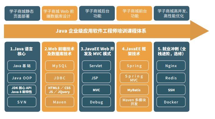 Java 的学习过程分为4个阶段: 理论阶段 开发阶段 进阶阶段 实战阶段 理论阶段 在具体谈论Java知识点之前,我想先跟同学们聊聊Java 语言自身的一些特点、生态系统以及适用的场景,这有助于我们更好的学习语言本身。 ![]() 首先,我们从Java 语言自身的实现机制来聊聊Java 语言的一些特性: 面向对象:Java 是一门面向对象的编程语言,封装、继承、多态这些特性使得Java 语言适用于大型软件系统的研发。 跨平台:这是Java 最重要的特性之一,由于有虚拟机的支持,Java 代码可以无缝运行在任何操作系统中,无需重新编译; 透明内存管理:做C/C++的同学最头疼的事情就是内存泄漏问题,在Java中,由于虚拟机会自动回收不再使用的内存空间,所以程序员无需显式回收内存。 足够的性能:性能一直是Java为人诟病的问题之一,但是在java6 之后,随着JVM虚拟机编译优化技术的不断进步,垃圾回收算法的不断优化,Java的性能已经能够胜任绝大多数系统的要求,甚至在性能要求极为苛刻的底层系统中,我们也能看到Java的身影。 ![]() 此外,Java 还有完善的生态系统: Java 拥有数量众多的第三方类库,作为一个开发者,你会发现作为一名Java程序员是一件很幸福的事情,因为很多事情别人都已经帮你做好了,你需要做的只是把别人造好的轮子组装起来,实现你的业务需求。 Java 拥有非常完善的开发环境Eclipse,集成了非常多实用的功能,且操作界面非常友好。 Java 有非常多优秀的框架,基于这些框架,可以快速开发出一个可扩展的业务系统。 Java 拥有非常活跃的社区和论坛,当你遇到问题的时候,你可以快速的得到其他人的帮助。 ![]() 介绍了Java 的这些优势,Java 到底适用在哪些系统研发中? ——Web系统 ——移动应用服务端以及安卓客户端开发 ——中间件系统 ——后端系统:例如大数据相关系统 在理论学习阶段,同学们首先应该从Java的基础语法开始学习,包括变量声明、条件判断、循环、函数编写。此外,还应该了解Web相关的基础知识,例如http 协议、Web应用的B\S架构。 数据库是Java 应用系统不可或缺的持久化组件,在理论学习阶段,需要学习SQL语法相关知识。 ✍这里有两点小建议: 1、可以通过完成一些算法题目,来巩固Java语法学习的成果 2、好记性不如烂笔头:多做笔记,勤练习 经过理论阶段的学习,你应该已经掌握了Java 基础知识。进入开发阶段,则需要掌握在日常实际Java项目开发过程中需要用到的一些技能。 首先工欲善其事,必先利其器,所以首先要熟练掌握Java的常用开发工具和开发环境。 Maven是目前大型公司常用的Java 夹包管理软件,可以帮助开发者解决Java 夹包之间的依赖和版本管理。 Git作为代码仓库管理软件,可以帮助我们实现代码版本、分支管理。 Ecplise是目前Java使用最广泛的开发环境,它集成了Maven、Git这些常用的插件。 其次,知识学习方面,需要掌握面向对象的相关知识,例如类和对象的定义方法、如何实现对象的继承、如何基于接口实现多态等;Java 容器在开发过程中也使用非常频繁,包括List、Set、Map等,最好能够了解每种容器的实现机制以及适用场景。 Web 方面,同学们需要掌握Servlet编程,包括Servlt config、context编写;数据库方面,同学们需要掌握JDBC,能够基于JDBC实现数据库的增、删、改、查。 最后,聊聊这个阶段的学习容易出现的误区: l 不要尝试一次性通过编译,遇到编译错误,很多同学会很焦躁,实际上错误之间有依赖,解决一个错误,可能后面的错误就会自动解除,千万不要被大量的错误吓倒。 l 不要copy代码,我觉得程序员一个非常不好的习惯就是拷贝代码,尤其在入门阶段,多尝试亲手敲代码。 l 注意编程规范:同学们要从代码学习开始,就注意编程规范,例如变量名定义规则、函数名定义规则,养成良好的编程习惯。 进阶阶段掌握了基本的开发技能,进阶阶段则主要锻炼开发者在实际典型业务场景下,提高开发效率,解决实际问题的能力。 在Web基础方面,要掌握Cookies和Session、转发和重定向、过滤器、监听器的相关知识; 数据库方面,要学习数据库连接池的使用方法,为什么要使用数据库连接池以及数据库死锁、数据库SQL 注入相关概念。 在Java 语言方面,要开始学习Java 应用框架,例如mybatis、spring,这些框架可以帮助我们更加高效的构建Java 工程。在框架学习过程中,我认为不仅要学习如何基于框架开发系统,更要注重框架自身设计思想,这对于开发者提升自己的代码架构能力是非常有帮助的。 在进阶阶段,要注意以下内容: l 以问题为导向: Java 知识繁杂,以问题为导向,作为切入点,能够提高Java 学习的效率; l 特定场景下的需求解决:每一种架构都有典型的应用场景,要结合实际应用场景去分析和解决问题; l 利用google:作为一名程序员,遇到未知问题是很正常的事情,关键利用好google,社区、论坛; l 性能的持续改进和优化:在进阶阶段,同学们应该要具备基本的性能调优能力,关注性能管理; 计算机编程是一个非常注重实战的领域,在Java学习过程中,必须要有一个实战项目,来帮助大家巩固之前的学习成果,这对于后续快速上手公司的实际业务有非常大的帮助。 你可以借助一些云平台,来熟悉环境搭建部署的过程。建议大家学习Docker的相关技术,微服务是目前系统设计中比较流行的架构,借助Docker快速部署、服务发现、服务编排的特性,可以帮助我们实现系统的快速发布和弹性扩展。 在实战