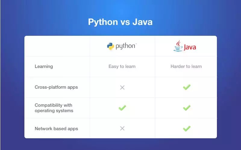 什么?看完这5点还没什么感觉?没有对比就没有优(shang)势(hai),超模君就拿Python跟其他语言来个大PK! ![]() ![]() Python vs Java 作为世界上使用范围最广的编程语言,Java难免总是被拿来跟Python比较,而且,在编程语言的各种对战中,Python 与Java也是打得最热烈的。 那到底是Python好还是Java好? ![]() from Cleveroad