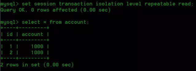 结果如下: ![]() 我们会发现数据并没有变,还是 1000。 接着在会话 A 中我们将事务提交: