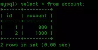 随后我们在 A 用户中查询数据,结果如下: ![]() 我们将事务隔离级别设置为 read uncommitted,即便是事务没有 commit,但是我们仍然能读到未提交的数据,这是所有隔离级别中最低的一种 那么这么做有什么问题吗?那就是我们在一个事务中可以随随便便读取到其他事务未提交的数据,这还是比较麻烦的,我们叫脏读。我不知道这个名字是怎么起的,为了增强大家的印象,可以这么想,这个事务好轻浮啊,饥渴到连别人没提交的东西都等不及,真脏,呸! 实际上我们的数据改变了吗? 答案是否定的,因为只有事务 commit 后才会更新到数据库。 二. read committed(可以读取其他事务提交的数据)--- 大多数数据库默认的隔离级别 同样的办法,我们将用户 B 所在的会话当前事务隔离级别设置为 read commited。 在用户 A 所在的会话中我们执行下面操作: update account set account=account-200 where id=1; 我们将 id=1 的用户 account 减 200。然后查询,发现 id=1 的用户 account 变为 800。 在 B 用户所在的会话中查询: