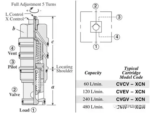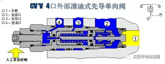 对于垂直运动的负载,为了在任意位置停止的时候,负载可以可靠的锁定,或者管路爆破的时候,油缸能够锁止并确保设备和人身安全,液压系统设计工程师常常会考虑到液压锁。 但是,有了液压锁,就可以100%的锁定了吗?下面结合笔者的一个设计和调试案例,与大家分享一下关于液压锁的应用。 背景介绍 钢厂连铸机大包回转台承载的钢包装有1500°左右的几十或者上百吨的钢水,因此设备和液压系统的安全可靠运行非常重要。 如图所示为大包回转台升降控制的液压系统原理。 该原理包含两部分。一部分是站内控制阀块,右边一组阀包含两个板式插装阀和一个两位四通电磁阀,控制柱塞缸的升和降的动作和速度,左边一组包含一个两位四通电磁阀和一个叠加式节流阀,控制缸旁块液压锁的启闭及其速度。另外一部分是缸旁阀块,包含液压锁、调速阀、常闭节流阀及溢流阀等,主要是实现调节运行速度、过载保护以及更重要的是在停止状态下柱塞缸的锁定功能。 ![]() 在之前的设计中采用Rexroth的SL系列板式液控单向阀。正向,A至B自由流动;反向,如果X口通控制油,控制活塞4作用于主阀芯2,使其打开,则B可与A相通;Y口与A口隔离,Y口的压力大小对主阀芯动作无影响。 该设计选型可以确保该原理可以正常的工作。 ![]() 由于设备空间比较紧凑,需要对阀块的结构尺寸进行优化;此外,也出于成本上的考虑,此处改用SUN公司的CV系列液控单向阀。 ![]() 在调试过程中发现,当控制液控单向阀的电磁阀4.4失电的时候,柱塞缸无法锁定在任意位置,会缓慢的下降。 造成柱塞缸下降的原因很多,从液压原理分析,最主要的原因可能有: