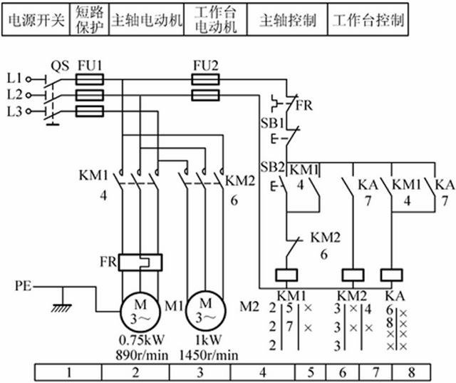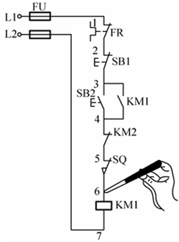 1 分析电气原理图的一般原则是:化整为零、顺藤摸瓜、先主后辅、集零为整、安全保护和全面检查。 分析主电路: 从主电路入手,根据每台电动机和执行电器的控制要求去分析各电动机和执行电器的控制内容,如电动机启动、转向、调速、制动等的控制。 分析控制电路: 根据主电路中各电动机和执行电器的控制要求,逐一地找出控制电器中的控制环节,将控制线路按功能不同划分成若干个局部控制线路来进行分析。 例如: 1、分析辅助电路; 2、分析联锁与保护环节; 3、分析特殊控制环节; 4、总体检查。 2 电气故障的检修方法 断路故障的检修 (1) 试电笔检修法:试电笔检修断路故障的方法。 (2) 校灯检修法:用校灯检修断路故障的方法如图所示。 (3) 万用表检修法。 ① 电压测量法:检查时要把万用表旋到交流电压500V档位上。 ② 电阻测量法。 ③ 短接法检修。 3 电气故障的检修步骤 01 故障调查 (1) 问:机床发生故障后,首先应向操作者了解故障发生的前后情况,这样有利于根据电气设备的工作原理来分析发生故障的原因。 (2) 看:熔断器内熔丝是否熔断,其他电气元件有无烧坏、发热、断线,导线连接螺钉有否松动,电动机的转速是否正常。 (3) 听:电动机、变压器和有些电气元件在运行时声音是否正常,可以帮助寻找故障的部位。 (4) 摸:电动机、变压器和电气元件的线圈发生故障时,温度显著上升,可切断电源后用手去触摸。 02 电路分析 根据调查结果,参考该电气设备的电气原理图进行分析,初步判断出故障产生的部位,然后逐步缩小故障范围,直至找到故障点并加以消除。 03 断电检查 检查前先断开机床总电源,然后根据故障可能产生的部位,逐步地找出故障点。检查时应先检查电源线进线处有无碰伤而引起的电源接地、短路等现象,螺旋式熔断器的熔断指示器是否跳出,热继电器是否动作。然后检查电器外部有无损坏,连接导线有无断路、松动,绝缘有否过热或烧焦。 04 通电检查 作断电检查仍未找到故障时,可对电气设备作通电检查。 |