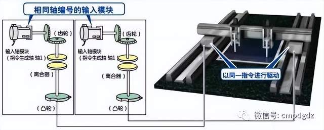 使用先进同步控制,将相同数据输出到凸轮,可实现并列驱动(串联驱动)。 启动步骤