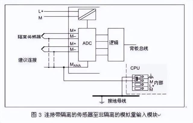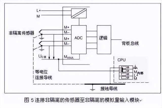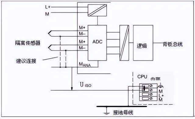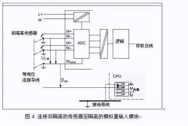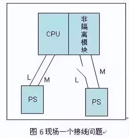 1、确定基准电位点很重要 近期有很多人咨询关于模拟量模块的问题,反映在现场的S7-300模拟量模块读数不变化,怎么弄都读数是32767。尽管模拟量模块大家都很熟悉,但是类似的问题还经常有用户反应。为此小编特意咨询了老师,老师将自己的经验归纳总结一下。 关于读不出值的问题,如果总是32767没有变化,其实值已经有了,只不过是超量程了。如果值为0,那就要注意模拟量是否有问题了,使用万用表测量现场信号并没有超限。为什么会出现这两种现象呢?这是因为选择的参考电位不同,例如,现场过来的信号为5V,那首先要问一下,基准点是几伏?10~15是5V,-10~ -5同样也是5V,如果测量端基准点是0V,那么测量就会有问题,所以一定要保证两端等电位。模拟量模块的基准电位点就是MANA ,所有的接线都与之有关。 2、隔离与非隔离问题系列 这里的隔离是指模拟量模块的基准电位点MANA 与地(也是PLC的数据地)隔离。隔离模块MANA 与地M可以不连接,以MANA 作为测量端的参考电位;非隔离模块MANA 与地M必须连接, 这样地M 变为MANA作为测量端的参考电位。隔离模块的好处就是可以避免共模干扰。如何知道模块是否是隔离模块,例如SM331模块,可以从模板规范中查到。S7-300中只有一款SM334(SM355除外)模块是非隔离的,此外CPU31XC集成的模拟量也是非隔离的,共同特点就是模块的输出和输入公用M端。 同样传感器也有隔离与非隔离的问题。通常非隔离的传感器电源的负端与信号的负端公用一个端子,例如传感器有三个端子 L, M 和S+,通过L, M端子向传感器供电,S+,M为信号的输出,公用M端。判断传感器是否隔离最好还是参考手册。隔离传感器信号负端与地M可以不连接,以信号负端作为信号源端的参考电位。非隔离传感器信号负端必须在源端(设备端)接地,以源端的地作为信号的参考电位。 下面就是如何保证测量端与信号源端等电位接线的问题。在下面建议的连接图中所用的缩写词和助记符含义如下: M +:测量导线(正) M -:测量导线(负) MANA:模拟量模块基准电位点 这里需要注意MANA ,不同的接线方式都是以MANA 为参考基准电位。 M:接地端子 L +:24 VDC电源端子 UCM:MANA与模拟量输入通道之间或模拟量输入通道之间的电位差 UCM共模电压,有两种: 1)不同输入信号负端的电位差,例如一个输入信号为3V,另一个输入信号也为3V,但是它们的基准点电位可能不同,可能是1~4V或3~6V,那么它们之间的共模电压为2V。 2)输入信号负端与MANA的电位差。 模块的UCM 是造成模拟量值超上限的主要原因。不同模块UCM 的最大值不同。 UISO:MANA和CPU的M端子之间的电位差 3、使用隔离的模拟量模块连接隔离的传感器 隔离传感器与隔离模拟量信号连接图如图1所示: 图1 连接隔离的传感器至隔离的模拟量输入模块 这种方式最简单,都与地隔离,都不需要接地,但是输入信号(传感器)负端与MANA 电压超过UCM最大限制,例如SM331(6ES7331-7KF02-0AB0)为2.5 VDC,就需要短接信号负端与MANA ,否则会出现超上限问题。现场可以查看一下,几乎所有超上限问题都是没有连接信号负端与MANA 。如果UISO 超过限制,例如75V DC,就需要连接信号负端、MANA 端以及接地端M,这时模块以大地M端为参考电位,实际变为非隔离使用了,这种情况很少见。 有的模块通道组间都是隔离的,没有MANA ,例如模块6ES7331-7NF10-0AB0,接线如图2所示: 这时每一个通道组(每组2通道)的M-就是MANA ,输入通道组间UCM 最大为以达到75VDC。 都隔离的情况下连接信号负端与MANA 端就可以了(2线制和电阻测量除外)。手册每个模块接线图中MANA都是建议接地的,我认为这是在接地良好、不会产生共模电压(例如单端接地)的情况下. 4、使用非隔离的模拟量模块连接隔离的传感器 这回我来讲讲使用非隔离的模拟量模块连接隔离的传感器的情况,模块的MANA与地M不隔离,这样必须连接MANA与地M,模拟量的参考点电位变成地M,典型接线如图3所示: 非隔离的模块都要求连接连接MANA与地M,例如模块SM334(6ES7334-0CE01-0AA0),在提示中强调必须连接,下面为引用手册的提示部分。 5、使用隔离的模拟量模块连接非隔离的传感器 传感器不隔离,那么信号源端以传感器本地的地为基准点电位。模块是隔离的,以MANA点为测量基准电位。典型接线如图4所示, 从图4可以看到,非隔离的传感器信号负端在源端接地,但是如果连接多个非隔离的传感器并且分布在不同的地方(不同的接地点),这种情况下就比较麻烦。各个传感器信号的负端会有共模电压UCM ,为了消除UCM ,将各个信号的负端在源端使用短而粗的导线进行等电位连接,由于模块的MANA和信号源端的地可能存在电位差,还要将MANA与源端的地进行等电位连接。在这里不能在模块处进行短接,否则不能消除UCM。 如果工厂接地不好,最好还是使用隔离的传感器。 6、使用非隔离的模拟量模块连接非隔离的传感器 如果使用非隔离的模拟量连接非隔离的传感器,那么一定将所有的点接地并进行等电位处理。典型接线如图5所示, 从图5可以看到,按照隔离与非隔离的要求,模块不隔离,必须连接MANA与地M,传感器不隔离则需要连接信号负端到本地的地,这样一边以信号源的地作为基准点,一边以模块的地M作为基准点,为了消除两者之间的电位差(共模电压UCM),需要使用足够粗的导线进行等电位连接。 如果整个工厂有等电位的接地网,使用非隔离的仪表和模块就比较简单,只需要连接MANA到本地的地M即可,因为