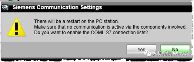 - 在弹出的对话框“是否使能COML S7”, 选择“Yes”