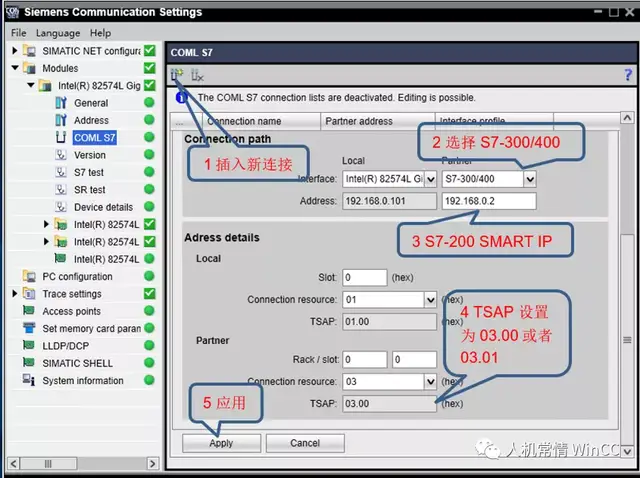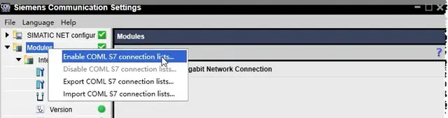 - 右键Module启用Enable COML S7 Connectionlists