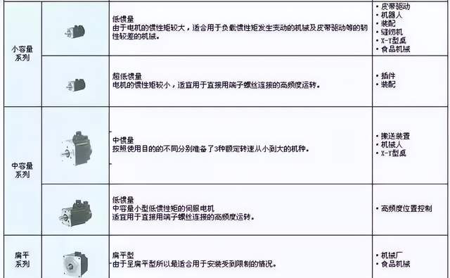 伺服电机内部的转子是永磁铁,驱动器控制的U/V/W三相电形成电磁场,转子在此磁场的作用下转动,同时电机自带的编码器反馈信号给驱动器,驱动器根据反馈值与目标值进行比较,调整转子转动的角度。伺服电机的精度决定于编码器的精度(线数)。 2伺服系统的组成及分类 组成: 伺服系统是以位置和角度为控制量的控制系统的总称,与位置和角度相关联的速度、角速度、加速度、力等为控制量的系统也包含在伺服系统内。 分类: 1. 按控制结构分类分为:开环式、闭环式。 2. 按驱动部件分类分为: a. 步进电动机伺服系统。 b. 直流电动机伺服系统。 c. 交流电动机伺服系统。 3伺服马达(交流)的特点 1. 定位精度高,普通伺服马达可达到0.036度 2. 回应时间快。 3. 控制方便灵活,控制系统易于实现。 4. 型号较多,可根据不同的应用环境选择不同的类型。 5. 提供全闭环控制,可适时监控运行状况,进行适当的调整变换。 4 伺服系统结构 5 伺服控制的选型步骤 1.确定机械规格,负载、刚性等参数。 2. 确认动作参数,移动速度、行程、加减速时间、周期、精度等。 3. 选择马达惯量,负载惯量、马达轴心转换惯量、转子惯量。 4. 选择马达回转速度。 5. 选择马达额定扭矩。负载扭矩、加减速扭矩、瞬间最大扭矩、实效扭矩。 6. 选择马达机械位置解析度。 7. 根据以上选择马达型号。 6 伺服控制的应用 步进控制 1步进电机的工作原理 步进电机是一种将电脉冲转化为角位移的执行机构。当步进驱动器接收到一个脉冲信号,它就驱动步进电机按设定的方向转动一个固定的角度(称为“步距角”),它的旋转是以固定的角度一步一步运行的。可以通过控制脉冲个数来控制角位移量,从而达到准确定位的目的;同时可以通过控制脉冲频率来控制电机转动的速度和加速度,从而达到调速的目的。步进电机可以作为一种控制用的特种电机,利用其没有积累误差(精度为100%)的特点,广泛应用于各种开环控制。 2步进电机的分类 现在比较常用的步进电机包括反应式步进电机(VR)、永磁式步进电机(PM)、混合式步进电机(HB)和单相式步进电机等。 ●永磁式步进电机一般为两相,转矩和体积较小,步进角一般为7.5度 或15度; ●反应式步进电机一般为三相,可实现大转矩输出,步进角一般为1.5度,但噪声和振动都很大。反应式步进电机的转子磁路由软磁材料制成,定子上有多相励磁绕组,利用磁导的变化产生转矩。 ●混合式步进电机是指混合了永磁式和反应式的优点。它又分为两相和五相:两相步进角一般为1.8度而五相步进角一般为 0.72度。这种步进电机的应用最为广泛。 3步进电机系统 1. 步进电机的静态指标术语 a. 相数:产生不同对极N、S磁场的激磁线圈对数。常用m表示。 b.拍数:完成一个磁场周期性变化所需脉冲数或导电状态用n表示,或指电机转过一 个齿距角所需脉冲数 。 c. 步距角:对应一个脉冲信号,电机转子转过的角位移用θ表示。 d. 定位转矩:电机在不通电状态下,电机转子自身的锁定力矩(由磁场齿形的谐波以 及机械误差造成的)。 e. 静转矩:电机在额定静态电作用下,电机不作旋转运动时,电机转轴的锁定力矩。 2. 步进电机动态指标及术语 a. 步距角精度:步进电机每转过一个步距角的实际值与理论值的误差。 b. 失步:电机运转时运转的步数,不等于理论上的步数。称之为失步。 c. 失调角:转子齿轴线偏移定子齿轴线的角度 。 e. 最大空载的运行频率:电机在某种驱动形式,电压及额定电流下,电机不带负载的最高转速频率。 f. 运行矩频特性:电机在某种测试条件下测得运行中输出力矩与频率关系的曲线称为运行矩频特性 。 4步进电机选型 1. 步距角的选择:电机的步距角取决于负载精度的要求 。 2. 静力矩的选择:静力矩选择的依据是电机工作的负载 ,一般情况下,静力矩应为摩擦负载的2-3倍内好 。 3. 电流的选择:由于电流参数不同,其运行特性差别很大,可依据矩频特性曲线图,判断电机的电流。 5步进电机的一些特点 1. 一般步进电机的精度为步进角的3-5%,且不累积。 2. 步进电机外表允许的最高温度一般在摄氏130度以上 。 3. 步进电机的力矩会随转速的升高而下降。 4. 步进电机低速时可以正常运转,但若高于 一定速度就无法启动,并伴有啸叫声。 5. 步进电机应用于低速场合---每分钟转速不超过1000转。 6两种电机之性能比较 1. 控制精度不同五相混合式步进电机步距角一般为0.72 °、0.36°交流伺服电机的控制精度由电机轴后端的旋转编码器保证 ,对于带标准2500线编码器的电机而言,其脉冲当量为360°/10000=0.036°,伺服电机精度要比步进马达高。 2. 低频特性不同步进电机在低速时易出现低频振动现象。交流伺服电机运转非常平稳,即使在低速时也不会出现振动现象。 3. 过载能力不同步进电机一般不具有过载能力。交流伺服电机具有较强的过载能力 。 4. 运行性能不同步进电机的控制为开环控制,启动频率过高或负载过大易出现丢步或堵转的现象,停止时转速过高易出现过冲的现象,交流伺服驱动系统为闭环控制,驱动器可直接对电机编码器反馈信号进行采样,内部构成位置环和速度环,一般不会出现步进电机的丢步或过冲的现象,控制性能更为可靠。 5. 速度响应性能不同步进电机从静止加速到工作转速(一般为每分钟几百转)需要200~400毫秒。交流伺服系统的加速性能较好,以松下MSMA 400W交