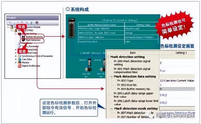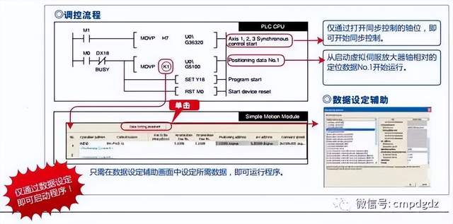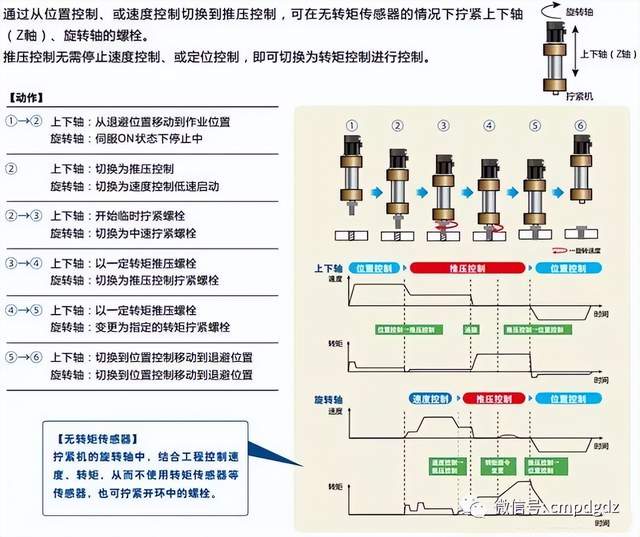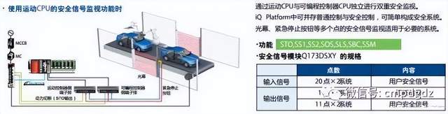 该案例适用于各种生产线设备、压入机、冲压机、印刷机、立式成型充填封口机、卧式成型充填封口机等。 1 传送带驱动轴1 2 传送带驱动轴2 (A) 玻璃窗安装工程(无人) (B) 安装座位工程(有人) (a) 玻璃窗安装机械手 (b) 紧急停止按钮 (c) 光幕 动作流程 现场课题 课题01如有人进入无人组装生产线,会停止---解决课题:切断功能。 课题02有人组装生产线中,希望确保安全的速度---速度监视功能。 模型系统 解决现场课题 解决01切断功能:通过充实安全功能,构建用途对应的安全系统。 解决02速度监控功能(SLS):通过速度监视确保生产线的安全性。 速度监视功能(SLS)是监视电机速度是否超过安全速度的监视功能。通过将指令速度与反馈速度与安全速度相比,保证安全速度。异常时,通过STO或SS1切断动力。 启动步骤 步骤1:安全信号的接线 步骤2:系统构成的设定 在系统构成画面中进行伺服放大器、伺服电机的设定。 步骤3:安全监视功能参数的设定 通过安全信号参数设定安全信号模块的使用台数,通过速度监视参数设定速度监视轴编号及安全速度等。 Q172DSCPU在搬运设备中的应用 该案例适用于通用材料的搬送设备、自动组装设备、封装机、航空机组装、扫描设备等。 1 X1轴(直线伺服电机) 2 X2轴(直线伺服电机) 3 Y1轴(直线伺服电机) 4 Y2轴(直线伺服电机) 5 Z1轴(上下轴) 6 Z2轴(上下轴) (a) 光幕 (b) GOT(Graphic Operation Terminal) 动作流程 现场课题 课题01抑制机械的振动---解决课题:先进振动抑制控制Ⅱ与机械共振抑制滤波器。 课题02以简单构造实行多传感头---解决课题:直线伺服电机。 课题03X1轴与X2轴总是进行相同动作----解决课题:串联驱动。 模型系统、 解决现场课题 解决01先进振动抑制控制Ⅱ机械共振抑制滤波器:通过一键式操作,实现先进的振动抑制控制功能。完成伺服增益调整。 先进振动抑制控制Ⅱ:通过对应3惯性系的机械的振动抑制控制算法,可同时抑制2种低频率振动。通过MR Configurator2也可简单进行调整。可对机械臂顶端或设备主体残留振动的控制发挥出效果。 机械共振抑制滤波器:通过提高滤波器构造,将适用频率范围由100Hz~4500H扩展到10Hz~4500Hz。并且,将可同时适用的滤波器由2个扩展到5个,从而提高机械的振动抑制性能。 解决02直线伺服电机:通过直线伺服电机可随意控制多传感头! 可以使用支持最大速度3m/s(LM-H3系列)、最大推力150N~18000N、最小分解能0.005μm的多串行I/F编码器相应的直线伺服电机的多传感头。 解决03 串联驱动:通过先进同步控制,简单进行串联驱动。 使用先进同步控制,将相同数据输出到凸轮,可实现并列驱动(串联驱动)。 启动步骤 步骤1:系统构成的设定 设定伺服放大器、伺服电机。 步骤2:直线控制参数的设定 直线伺服电机的参数也仅需设定2画面的数据。 步骤3:振动抑制控制参数的设定 将振动抑制控制模式变为3惯性模式,使先进振动抑制控制Ⅱ有效。 步骤4:程序的编辑 作成运动SFC程序、伺服程序。 QD77MS4在螺丝拧紧机的应用 该案例适用于螺帽拧紧机、汽缸盖加固机、离合器加固机、压入机、铆接机等设备。 1 X轴 2 Y轴 3 上下轴(Z轴) 4 旋转轴 (a) 拧紧机 (b) 工件 动作流程 模型系统 解决现场课题 解决01推压控制:可拧紧开环中的螺栓。 解决02减少通电转矩波形:反复拧紧螺栓,提高精确度。 通过电机极数与插槽数最佳的组合,可大幅降低通电转矩脉动。 拧紧螺栓时,反复进行拧紧,可改善精确度。 启动步骤 步骤1:系统构成的设定 通过系统构成进行伺服放大器的设定。 步骤2:进行各轴的伺服放大器设定。使用伺服助手功能,即使第一次使用也可简单进行设定。 步骤3:推压控制用顺控程序的制作 通过功能块(FB) 可简单制作控制模式切换等的控制用程序。 QD77MS2在贴标设备的应用 该案例适用于金属•纸的切断设备、添加折叠线设备、贴标设备、打印机、扫描设备等。 1 旋切刀具轴 (a) 色标传感器 (b) 旋切刀具 (c) GOT (d) 传送带 (e) 同步编码器 动作流程 现场课题 课题01从GOT设定想要的纸张长度-—解决课题:凸轮自动生成功能。 课题02根据基准色标位置切断纸张—-解决课题:色标检测功能。 模型系统 解决现场课题 解决01凸轮自动生成功能:通过自动生成凸轮数据,削减设计工时! 根据包装纸的纸张长度、旋切刀具轴直径、纸张同步区间可生成凸轮数据。 通过自动生成凸轮数据,可削减设计工时。 解决02色标检测功能:通过基准色标位置的检测→进行补偿,使吻合基准色标进行切断! 根据纸张的弹性、送纸时的平滑度等检出与基准色标位置的偏差。 通过调整与基准位置的偏差,可配合基准色标进行切断。 启动步骤 步骤1:系统构成、色标检测的设定 进行系统构成、色标检测的设定。 步骤2:同步控制参数设定 设定参数,使旋切刀具(轴1)与传送带同步后进行运行。 步骤3:顺控程序与定位数据的生成 旋切刀具(轴1)同步开始后,启动驱动传送带的变频器。 QD77MS16在包装机中的应用 该案例适用于食品•饮料填充机、袋包装包装机、粉末的填充机等。 1 放卷轴 2 搬送辊轴 3 搬送辊轴 4 密封&切割轴 5 传送带轴 (a) 色标传感器 (b) 供给器 (c) 热密封器 (d) 薄膜成型设备 (e) 密封&切割设备 (f) 安全用接近传感器 (g) 张力控制用浮动辊 (h) 辊幅检测用传感器 (i) 产品检测用传感器 动作流程 现场课题 课题01搬送与密封&剪裁同时进行,从而使包装