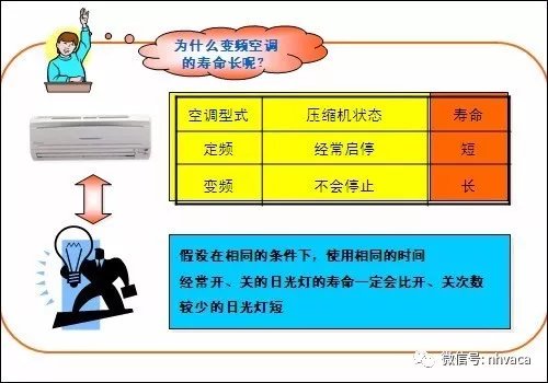 2、变频空调相对来说压缩机启动次数大大减少 ,因此也大大延长了压缩机的使用寿命。 以上我们主要介绍了什么叫变频空调、变频空调和定频空调的区别。从舒适度、节能效果、静音、制冷制热速度和使用寿命五大方面来看,变频空调都完胜于定频空调,目前市场上的很多多联空调都是采用的变频压缩机,如果您是一位追求生活品质的用户,或者更注重节能效果的用户,那么,变频空调将是一种不错的选择。 本文来源于互联网,不代表暖通南社立场。